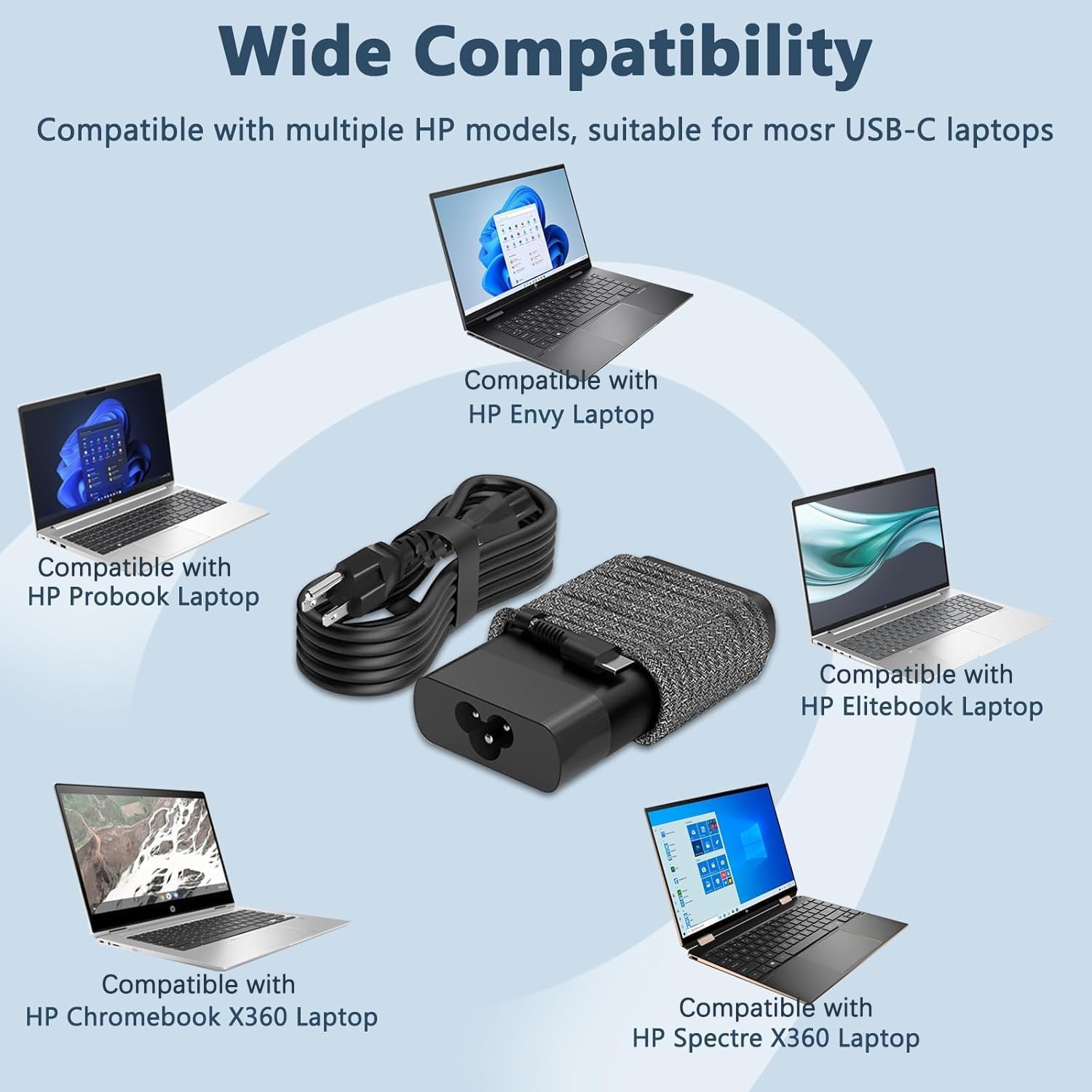 Compatibility: ELECBRAiN 65W USB C Power Adapter compatible with HP Spectre X360, Compatible with HP Spectre/ HP Spectre X2/ HP Spectre x360 13-v011dx 13-v111dx 13-w063nr 12-c052nr and More. ELECBRAiN Laptop Charger Compatible with HP Envy X360 Laptop: HP Envy X2/ HP Elite x2 G4 G8, HP Notebook x2, Envy x2, Pavilion X2, ZBook 65W Series. HP Envy x360
