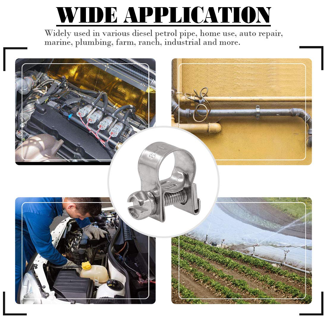 Glarks 12pcs 8-10mm Stainless Steel Mini Fuel Injection Hose Clamps Adjustable Pipe Hose Clip Tube Clamps Set ♛【Specification】: Product Type: High precision fuel injection style hose clamps Material: 304 stainless steel Clamp Range: 8-10mm ♛【Product Feature】: ♣ High quality 304 stainless steel, with strong corrosion and acid resistance, will not rust and break. ♣ Screws are adjustable so that you can adjust the size according to the diameter of the tube. ♣ Clamps are edge polished smooth to hold securely and without damaging the hoses. ♣ Attach the hose clamps on hoses pipe joints to prevent liquid leakage for saving your time and money. ♣ Widely used in various diesel petrol pipe, home use, auto repair, marine, plumbing, farm, ranch, industrial. ♛【Package Detail】: 8-10mm hose clamp x 12pcs ♛【Warm Note】: ♥ Please check the specific size of the product according to the second picture. Due to manual measurement, there may be errors, please don't mind.