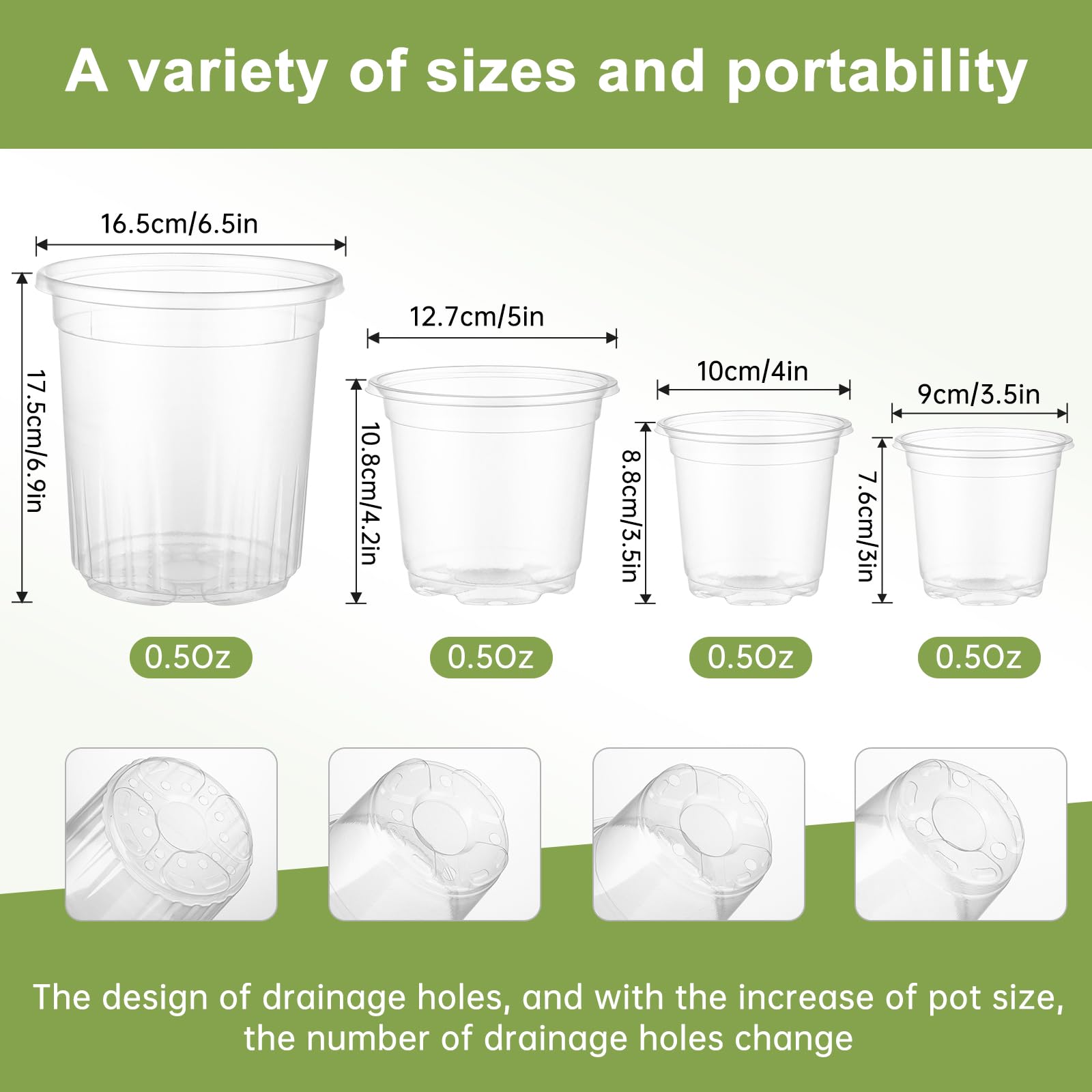 OPTIMAL DRAINAGE SYSTEM: This Clear Plant Pots With Drainage Is Extremely Lightweight, Weighing Only 0.5 Ounces In Its Largest Size, As Planting Pots Sizes Increase, So Do Their Drainage Holes. Drainage Holes At The Bottom Of Plastic Flower Pots Help Remove Excess Water And Effectively Prevent Root Rot