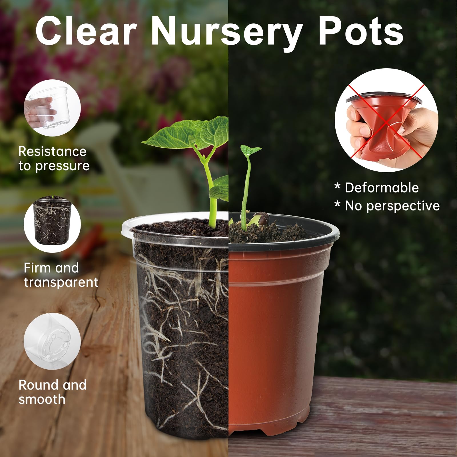 VISUALIZED CLEAR NURSERY POTS: The Clear Nursery Pots Features A Mirror-Like Transparency, Facilitating Easy Monitoring Of Water Levels And Soil Humidity. Adjust Watering Frequency Promptly And Scrutinize Every Seedling Detail, Including Leaves, Stems, And Overall Shape. Quickly Assess Whether A Larger Nursery Pots Is Needed