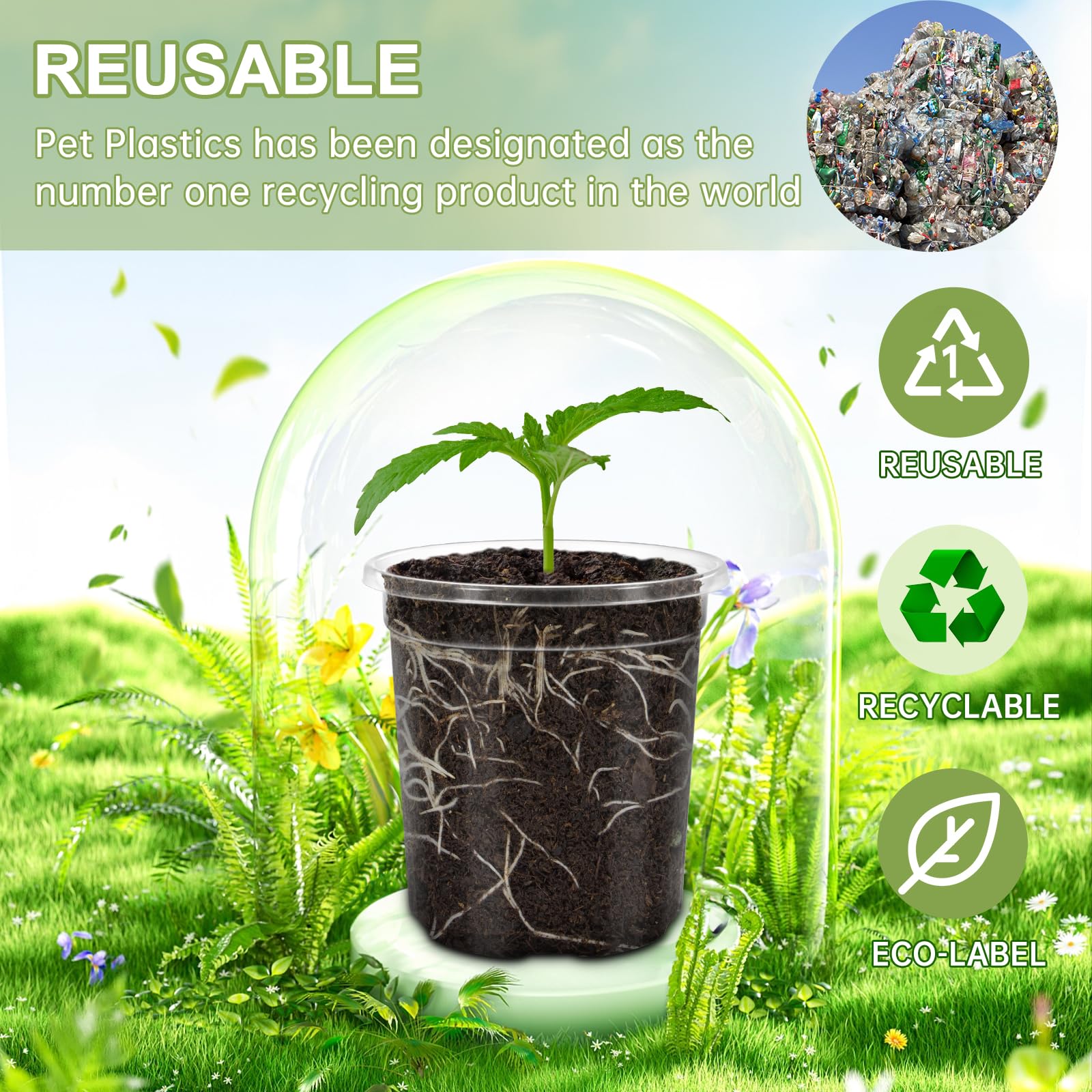REUSABLE: Clear Pots For Plants Pet Plastic, Designated International Number 1 For Recycling, Stands Out For Being 100% Recyclable, Extremely Sustainable, Strong, Non-Reactive And Resistant To Deformation