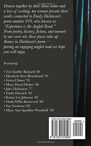 Drawn together by their alma mater and a love of writing, ten women present short works connected to Emily Dickinson’s poem number 910, also known as “Experience is an Angled Road.” From poetry, history, fiction, and memoir to our cover art, these pieces take up themes in Dickinson’s poem — paving an engaging angled road we hope you will enjoy.