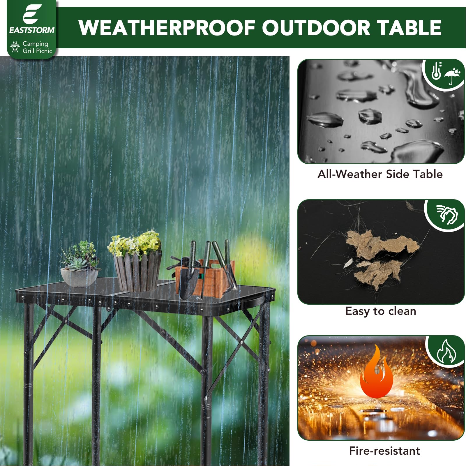 【Iron Top—Stronger & More Durable than MDF Tables】Unlike MDF or plastic tables that warp or swell when wet or hot, this folding table features a heavy-duty iron top built for long-term use. The metal surface resists scratches, heat, and moisture, keeping its shape after years outdoors. Ideal for grilling, tool work, or crafts, it supports heavy loads without bending. The non-porous surface prevents stains and absorbs no moisture, allowing quick cleanup after BBQs, painting, or meal prep.