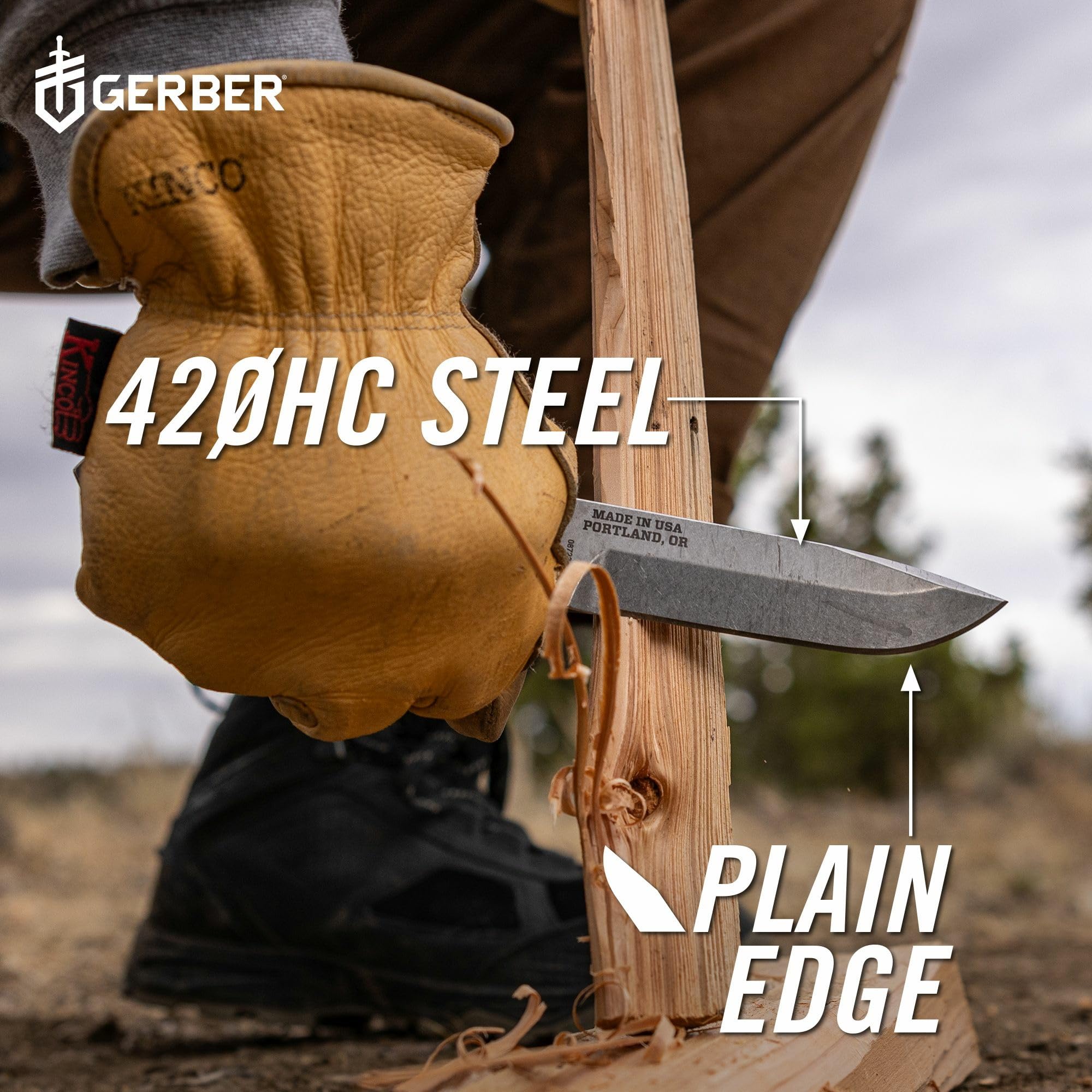 Iconic Strongarm Design: This Gerber Gear fixed blade knife features a full-tang, 420HC Steel with a plain edge that’s renowned for its corrosion resistance, edge retention, and strength