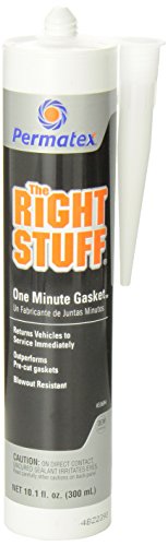 Make leak-proof gaskets and return equipment to service immediately with Permatex The Right Stuff 1 Minute Black RTV Gasket Maker! The Right Stuff is our most advanced gasket maker made for high flexible and high oil-resistant applications. It eliminates the need to wait for the gasket maker to cure - just reassemble and go! The elastomeric "formed-in-place" material is more reliable and longer lasting than pre-cut gaskets. It is blowout resistant and protects against leaks and seepage caused by vibration and thermal expansion. Formulated to meet or exceed performance standards for long-term sealability, durability and handling, this material is used on OEM production lines and specified in their service parts programs. Temperature range -75°F to 450°F (-59°C to 232°C) continuous, 500°F (260°C) intermittent; resists ATF, coolant, oil and other shop fluids. Sensor-safe and non-corrosive. Fleet-tested. Recommended applications include oil pans, timing covers, transmission pans, differential covers.