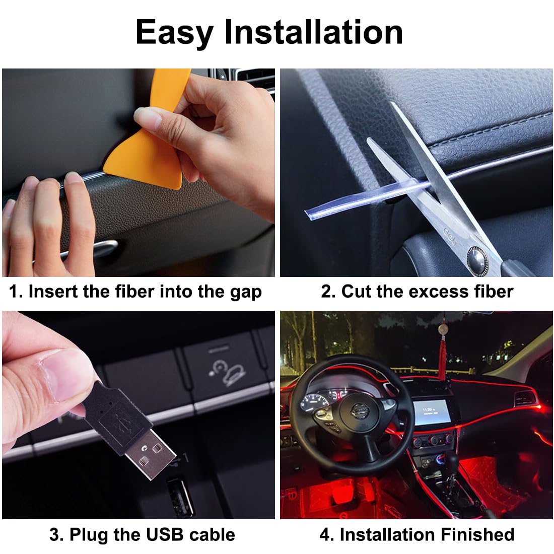 Safe and Tidy: The car interior ambient light is powered by USB, you can install it in the car gap, which can provide your car with a good atmosphere effect and make your car tidy. No heat even if used for a long time, Much brighter than regular el wire.