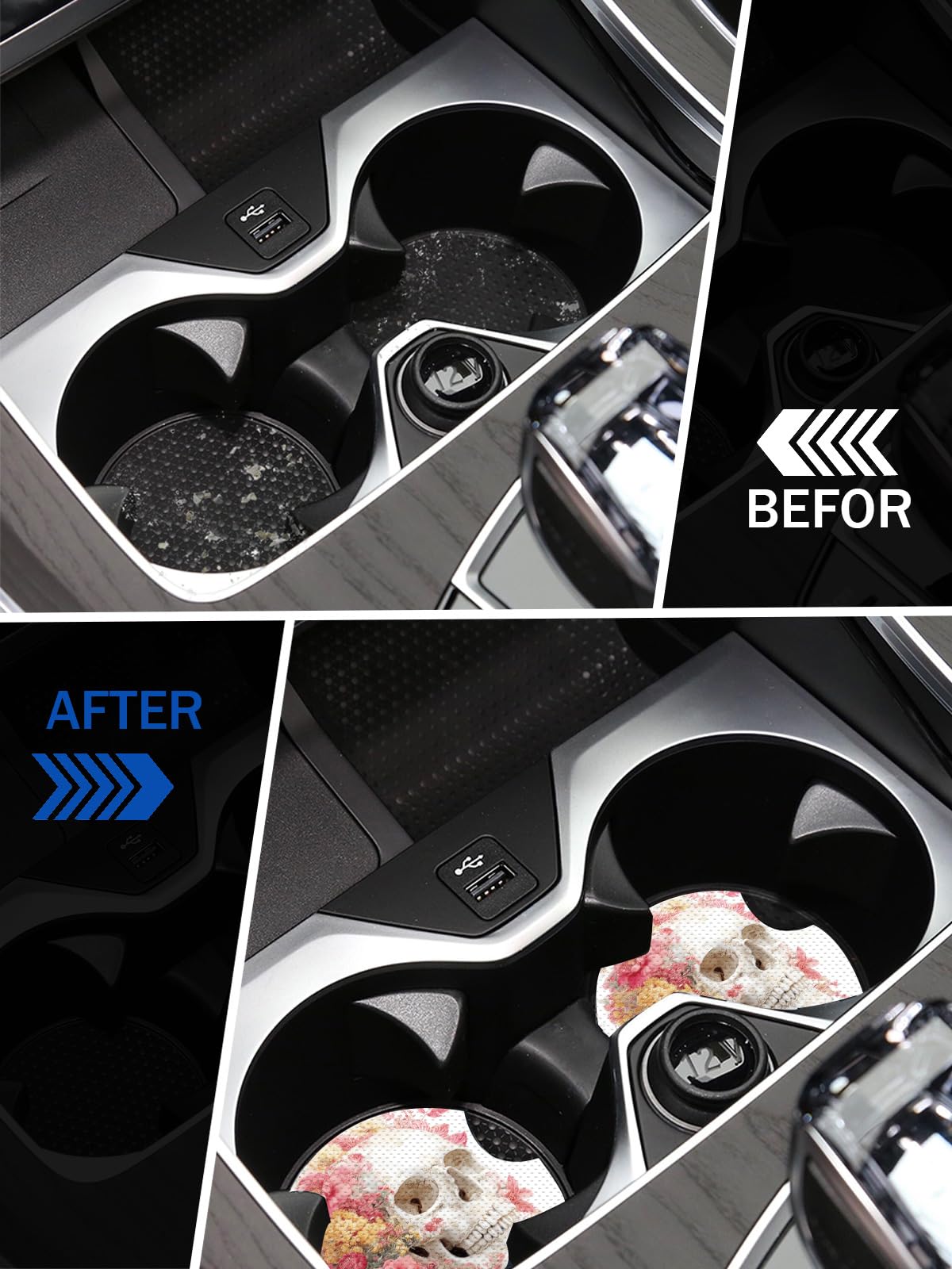 The car cup coasters super cute and keep all our cup holders clean all while protect our car and are absorbent