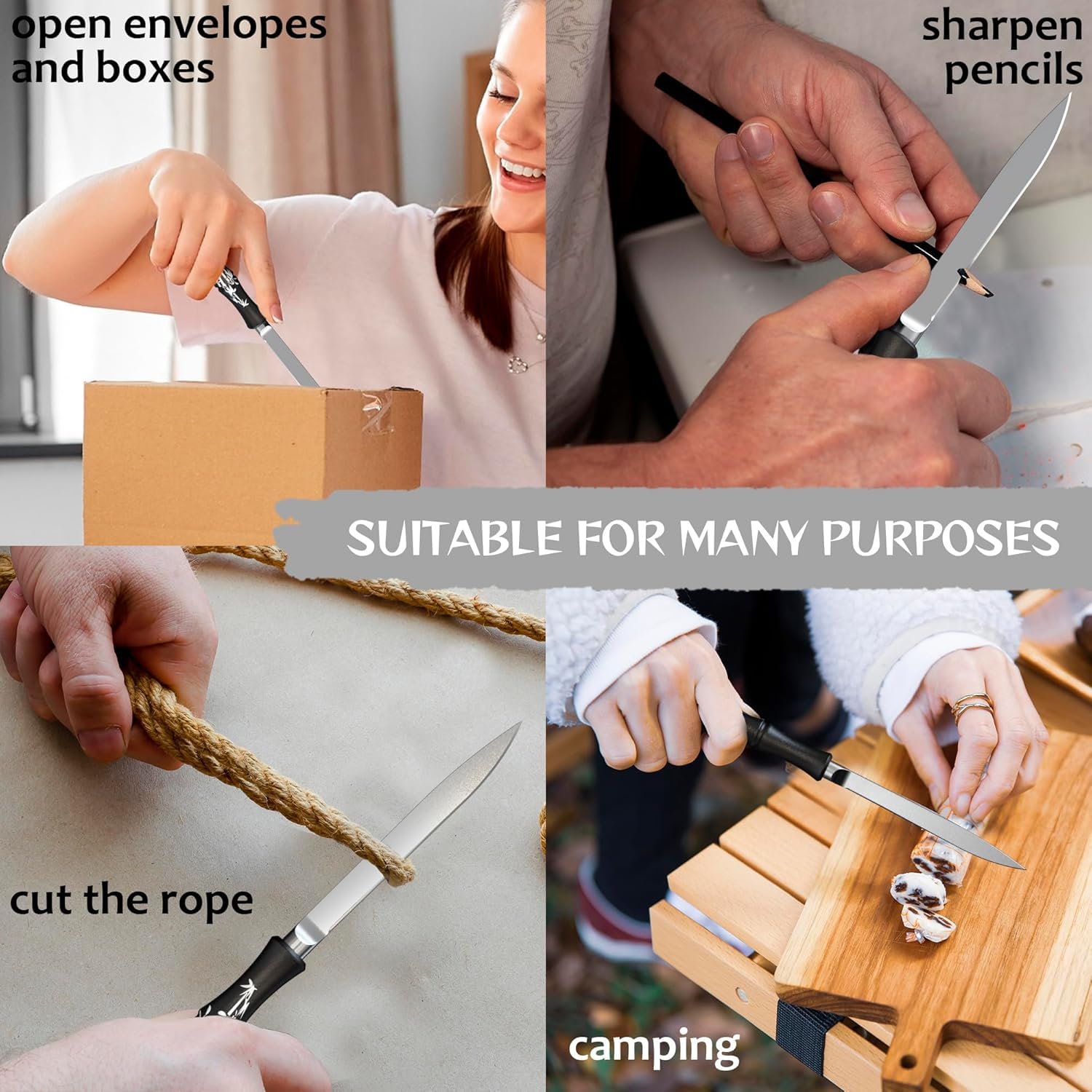 Small multi-function thin knife for everything: EDC, box opening, letter opening. Mini utility knife is ideal for unpacking, box cutting. Nice letter opener. Good for small tasks while camping, hiking, backpacking, hunting, fishing, survival, survival, self defense, emergencies. Box cutter knife, envelope, mail can opener.