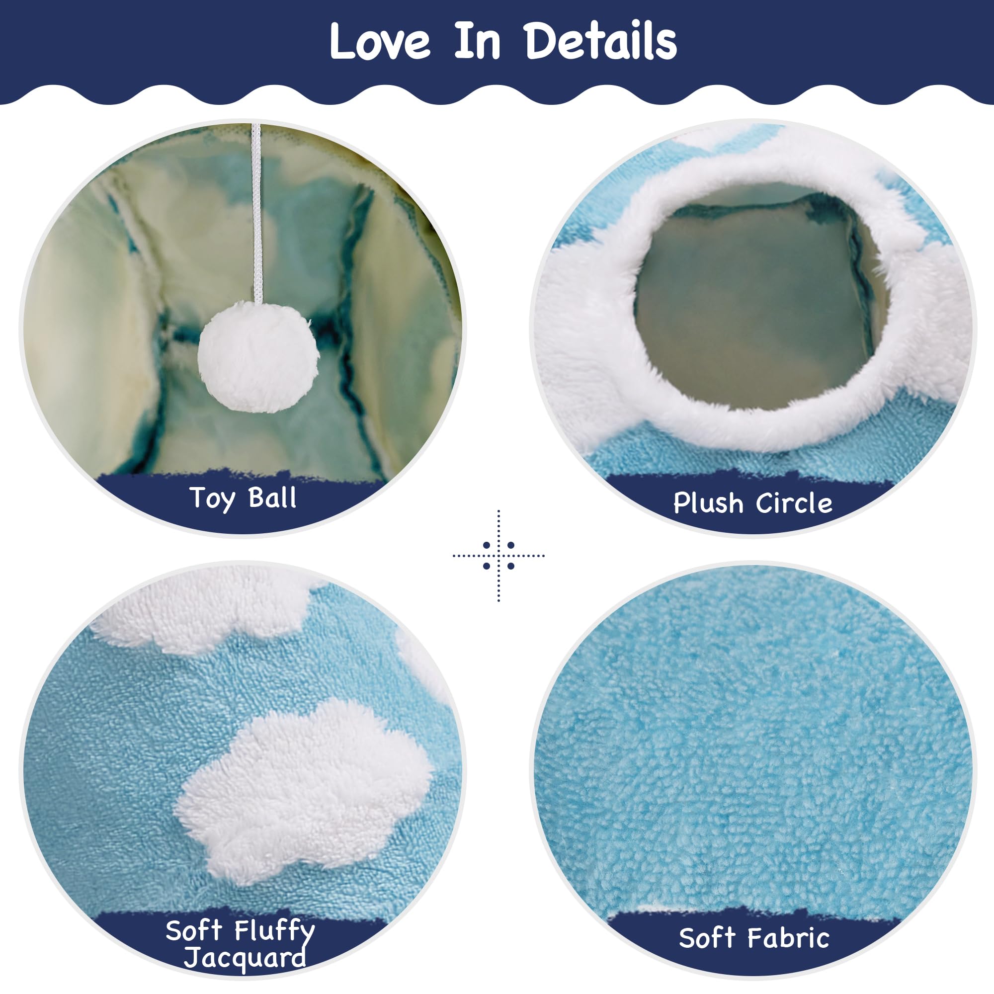 Best Ways to Play: Our cat tunnel with 3 spacious tunnels, peephole & beall toy, this popular cat toy gives your kitty more ways to have fun. Provides hours of exercise & self-amusement.And its furry appearance can decorate your room, giving you a beautiful experience.