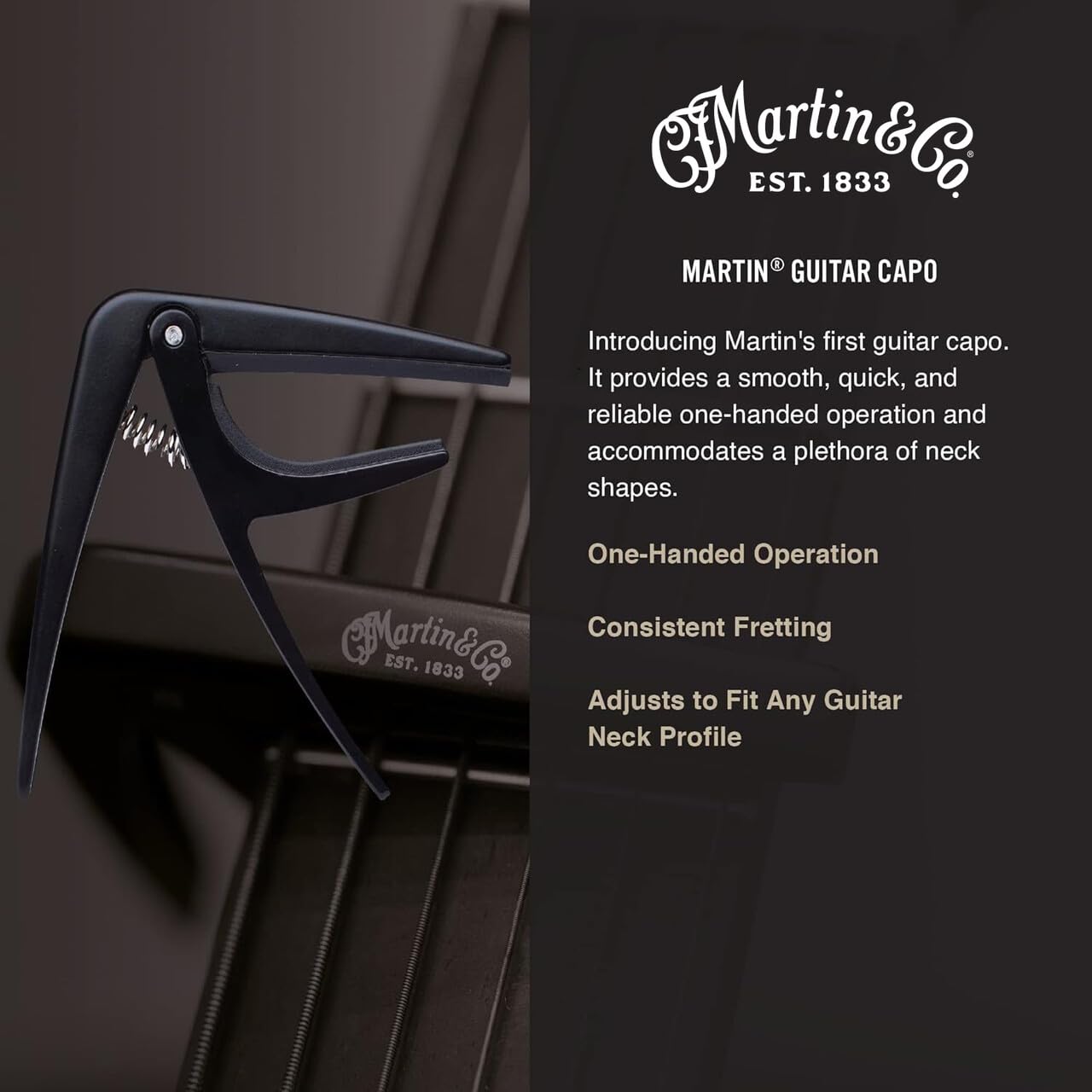 Introducing Martin's first guitar capo. Delivering smooth, quick, and reliable one-handed operation all while accommodating a plethora of neck shapes.
