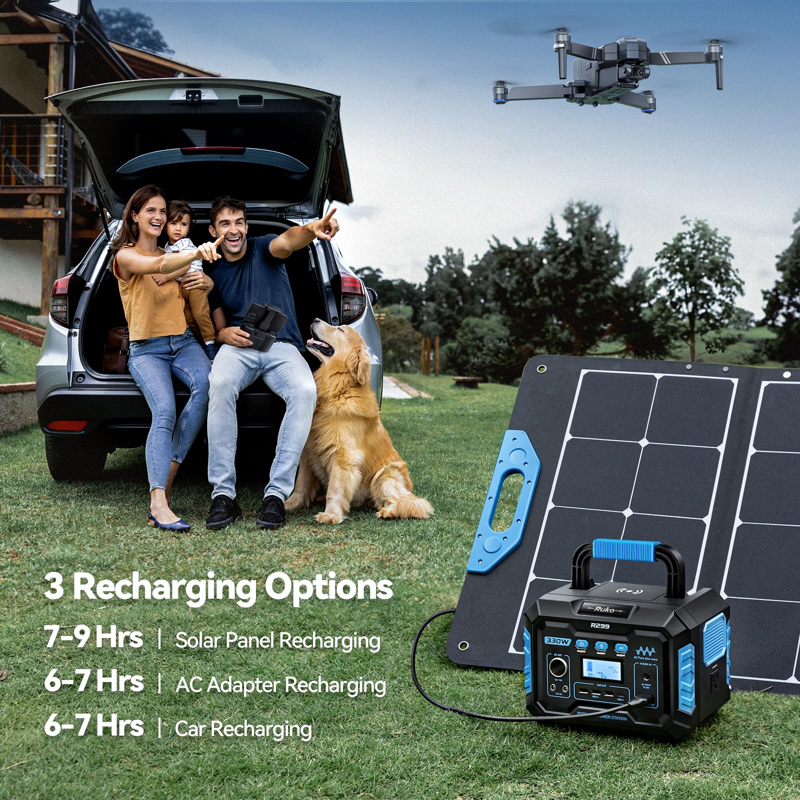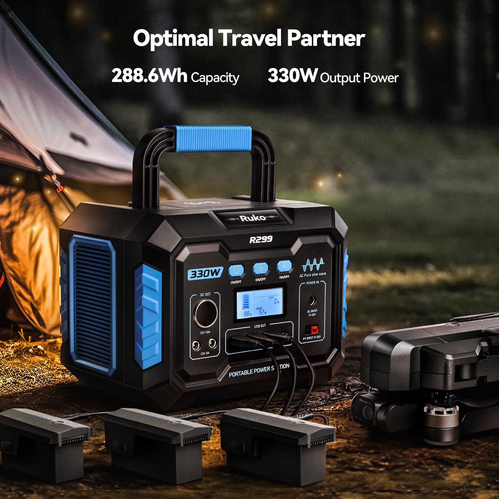 【IDEAL POWER FOR CAMPING】R299 portable power station owns 288.6Wh lithium battery capacity, which enables you to power small electronic devices and appliances wherever you go, serving as an emergency backup power source for critical devices and even some medical equipment such as CPAP machine, etc.
