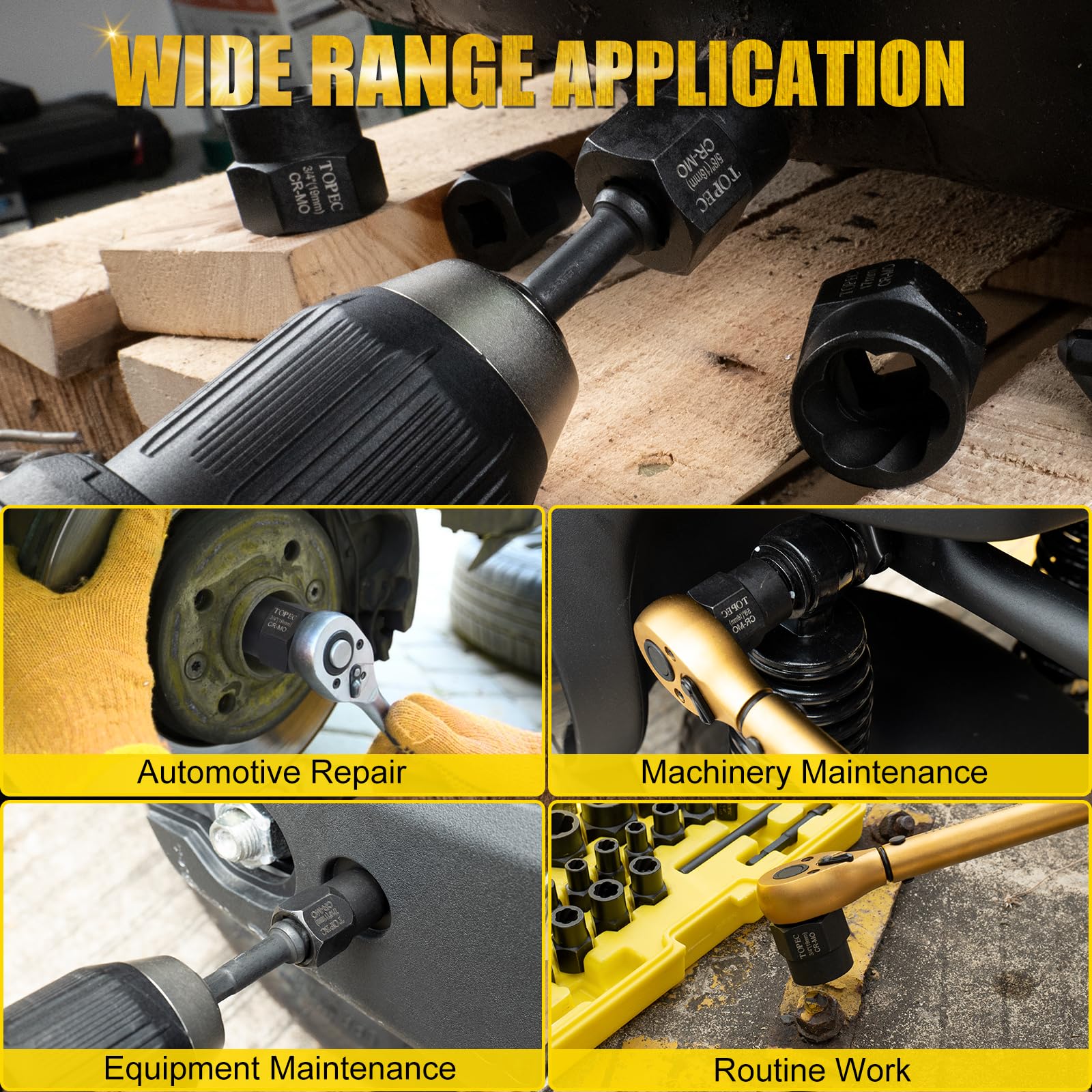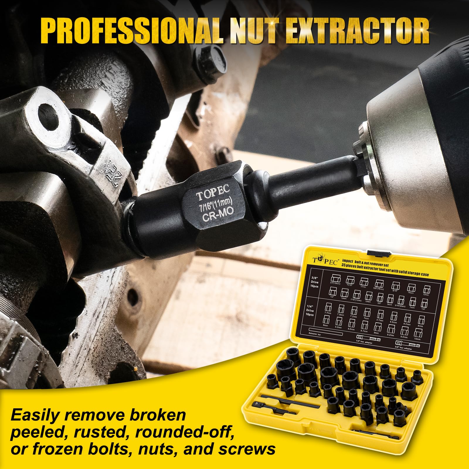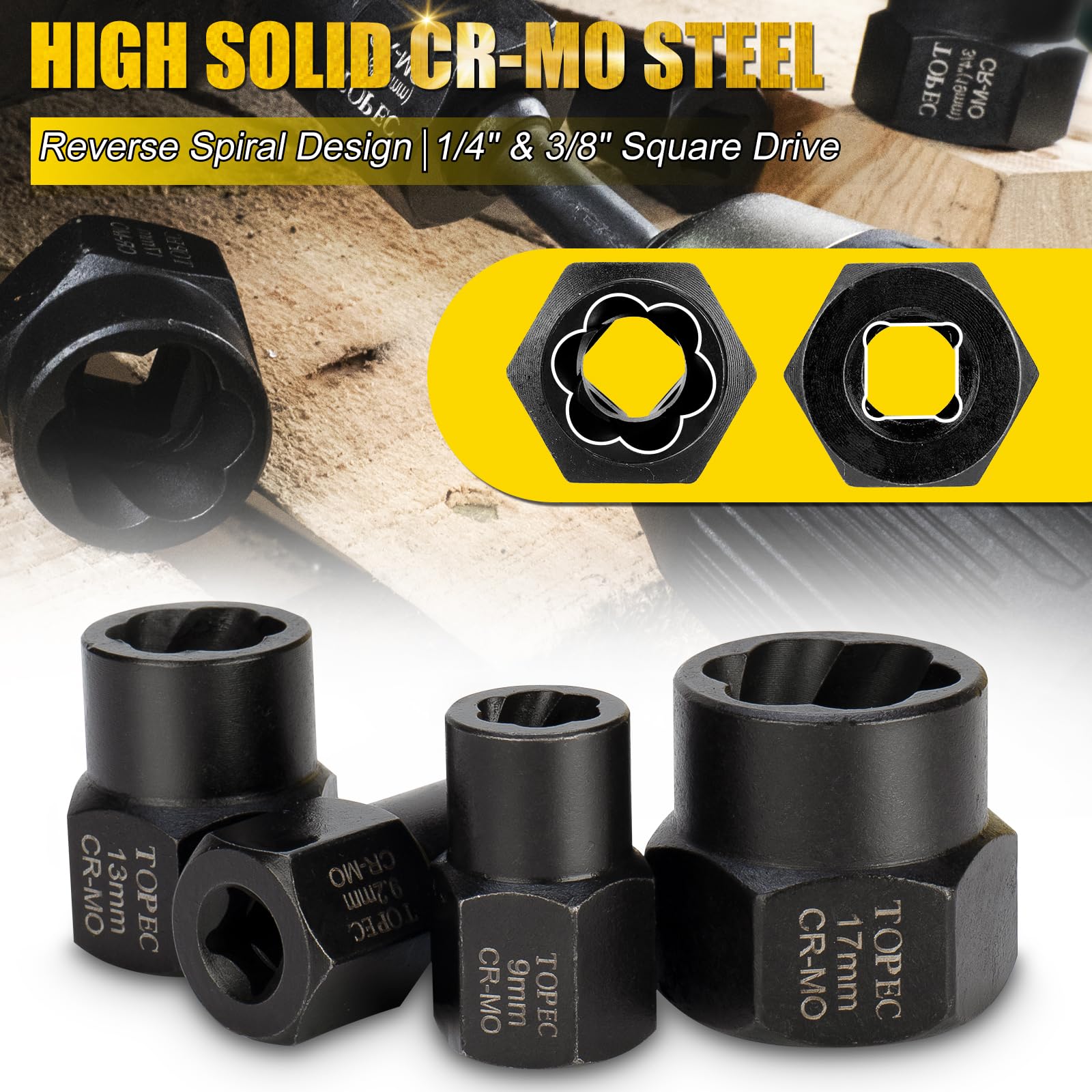 Excellent Grip: The twist socket set provides superior grip power to remove old rusted and stripped bolts. Bolt extractor kit can easily pull out bolts, nuts and screws even if they are stripped, rusted or frozen.