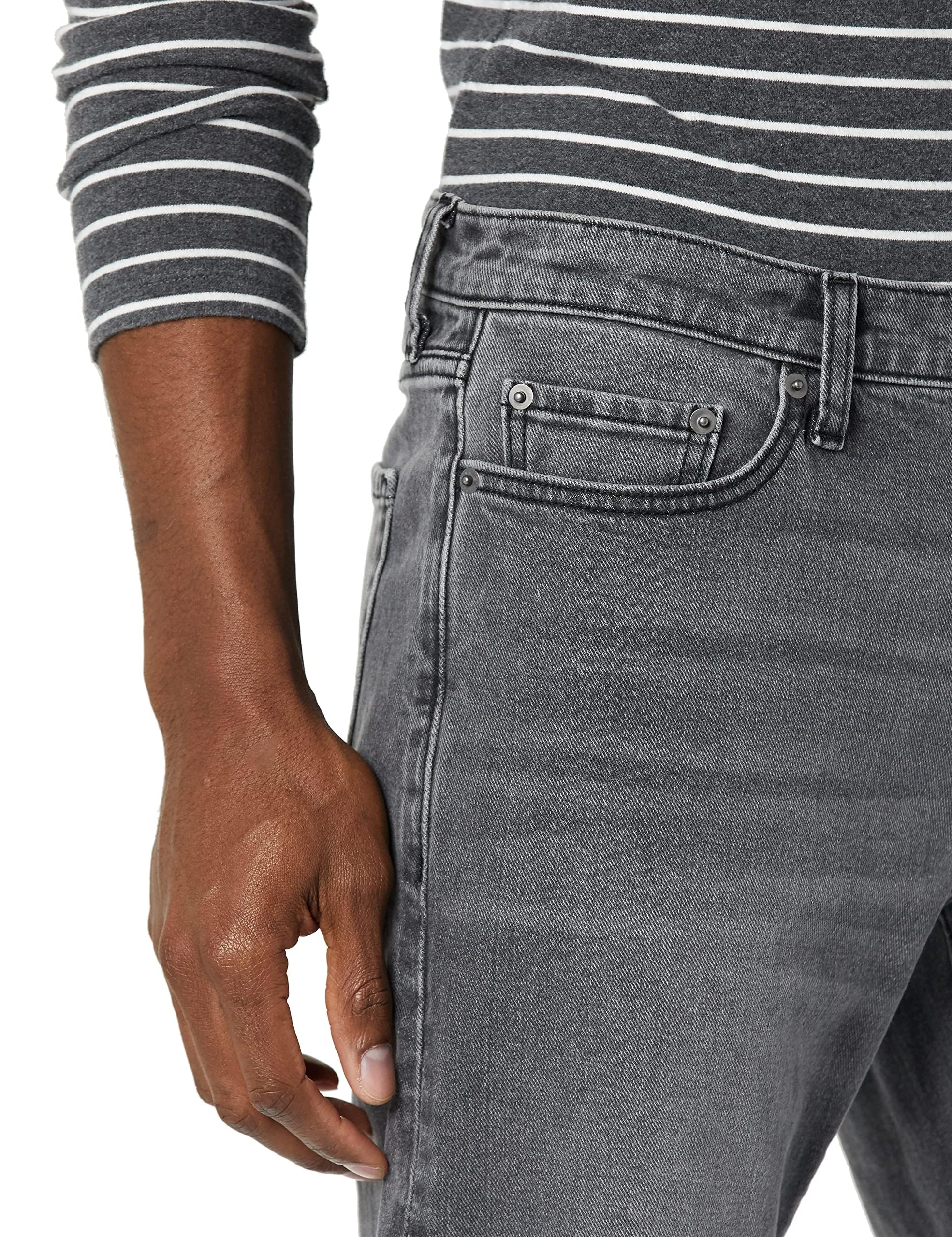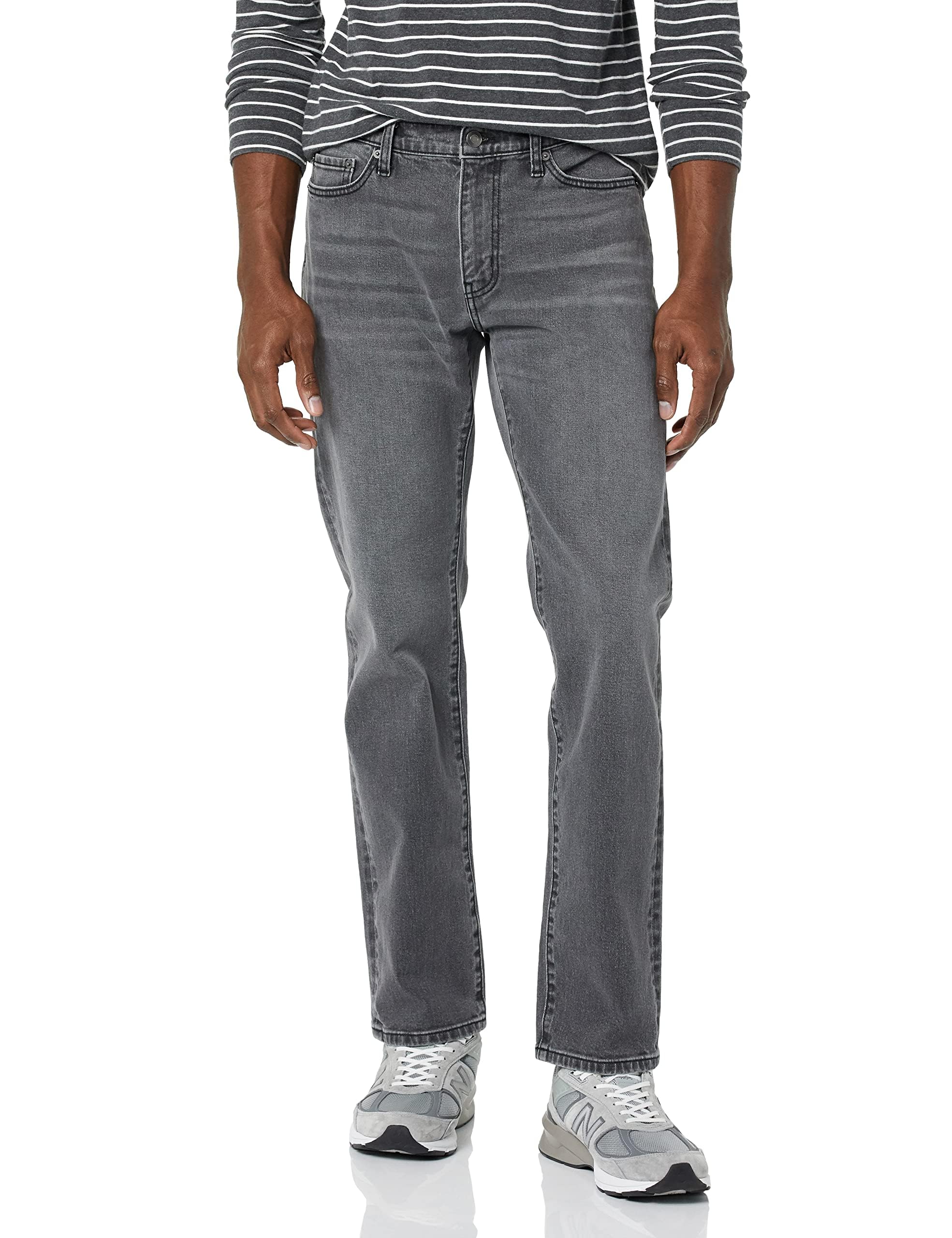 Description An Amazon brand - These classic 5-pocket straight-fit jeans are crafted with a bit of stretch for additional comfort and to help maintain their shape