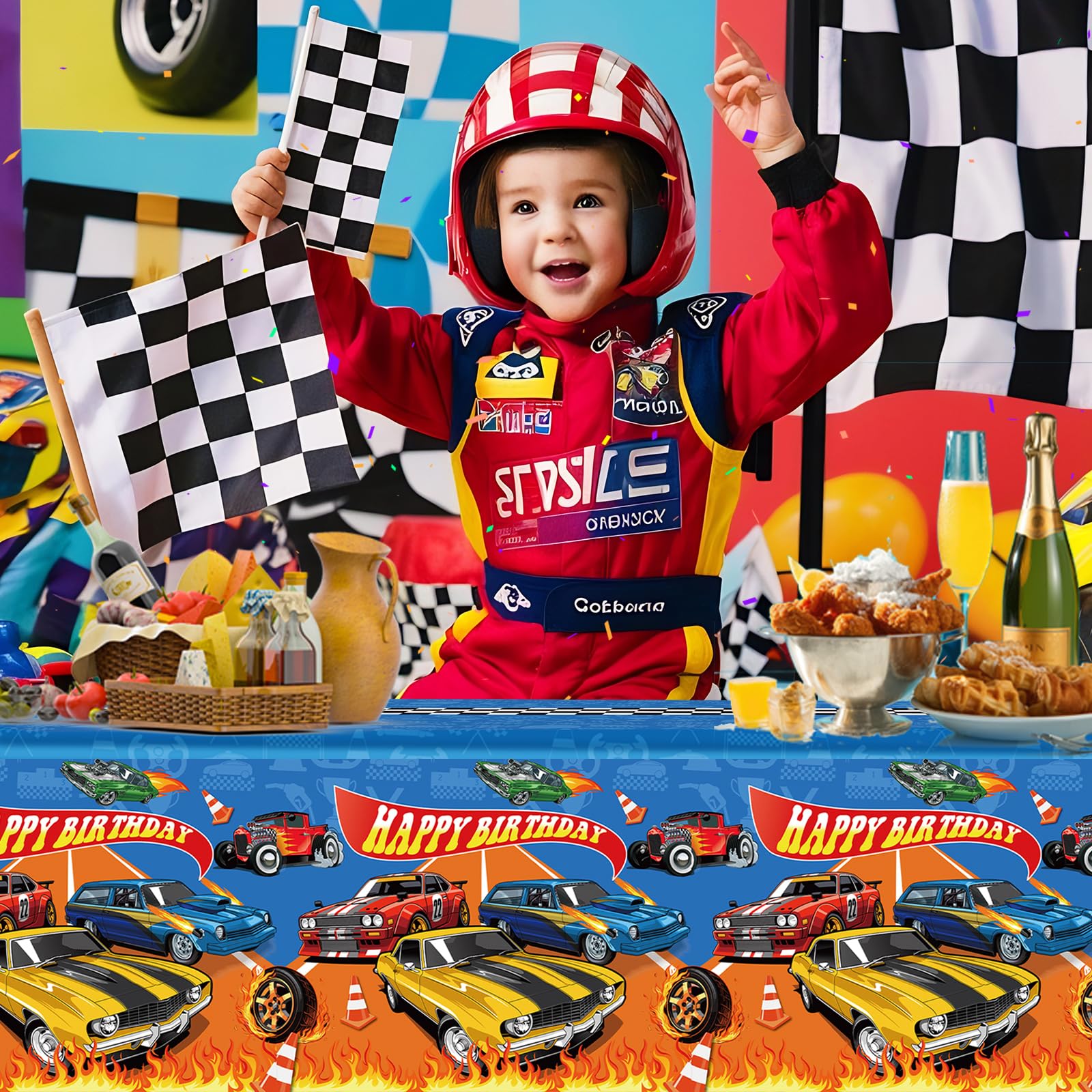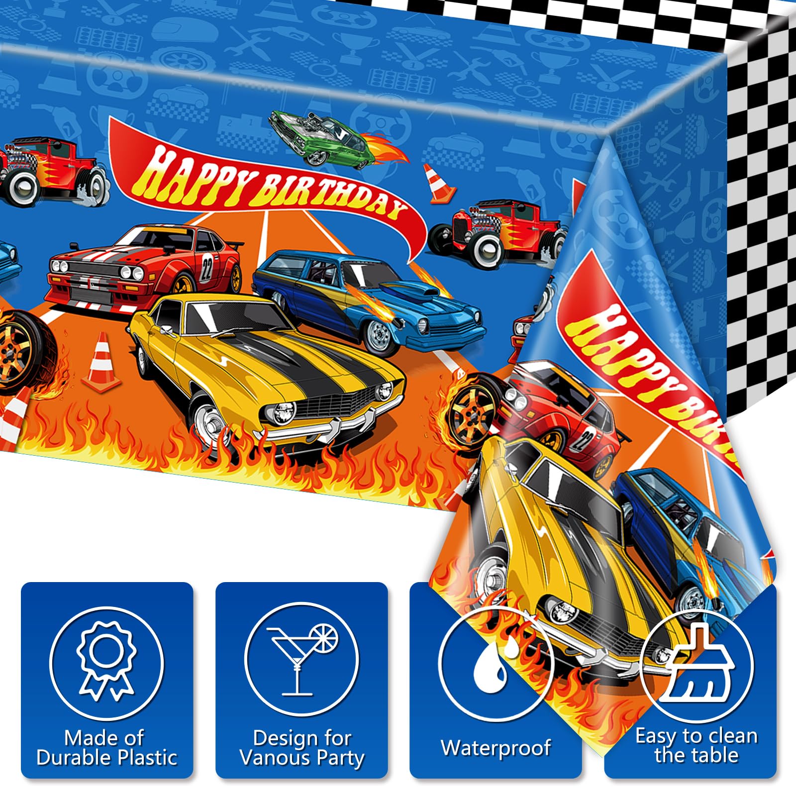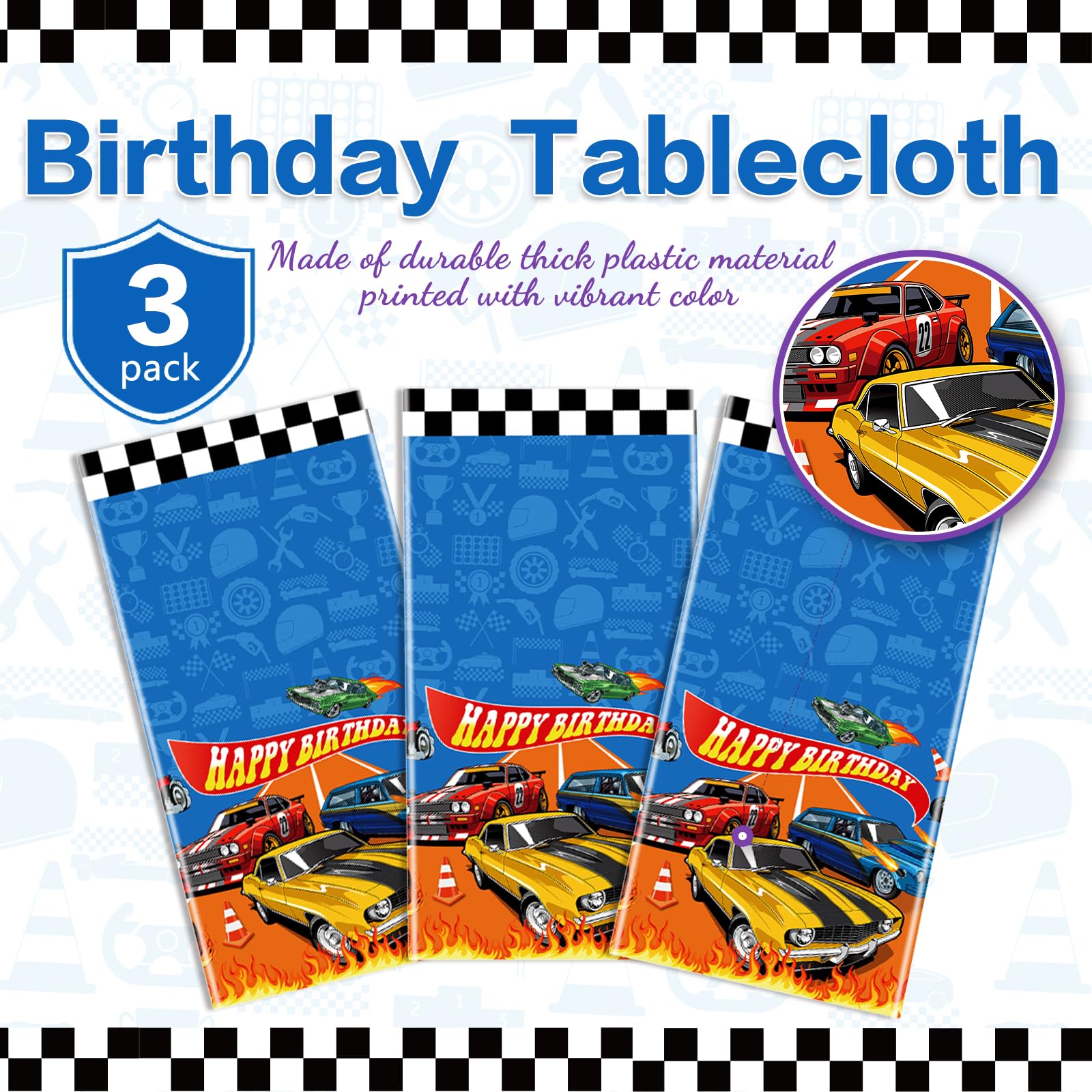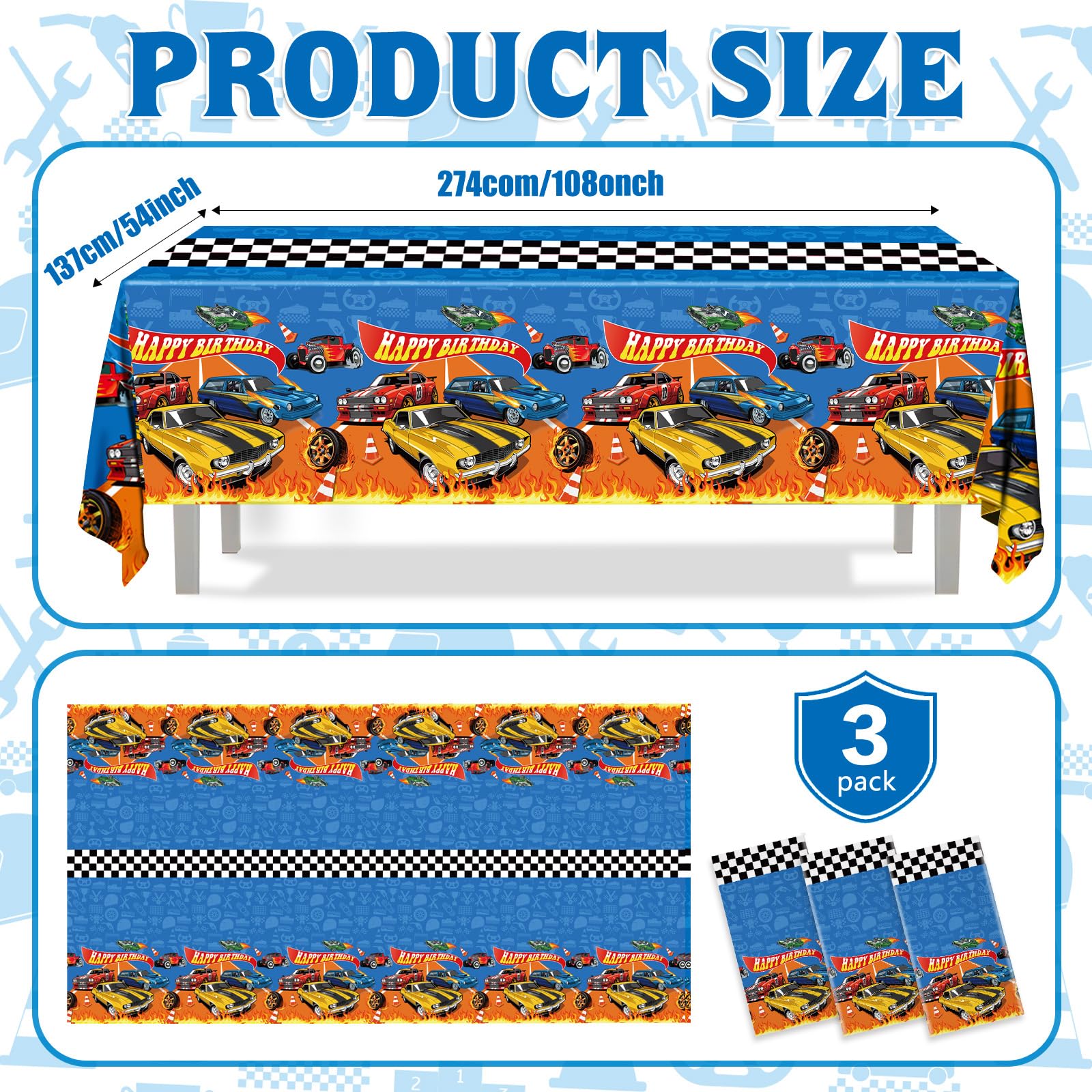 Racing Car Party Tablecloth: You will receive 3 pcs race car tablecloths. Large enough to cover standard 8 foot rectangular table. This party tablecloths can be easily folded or cut to fit small tables, which to create beautiful memories for friends and guests.