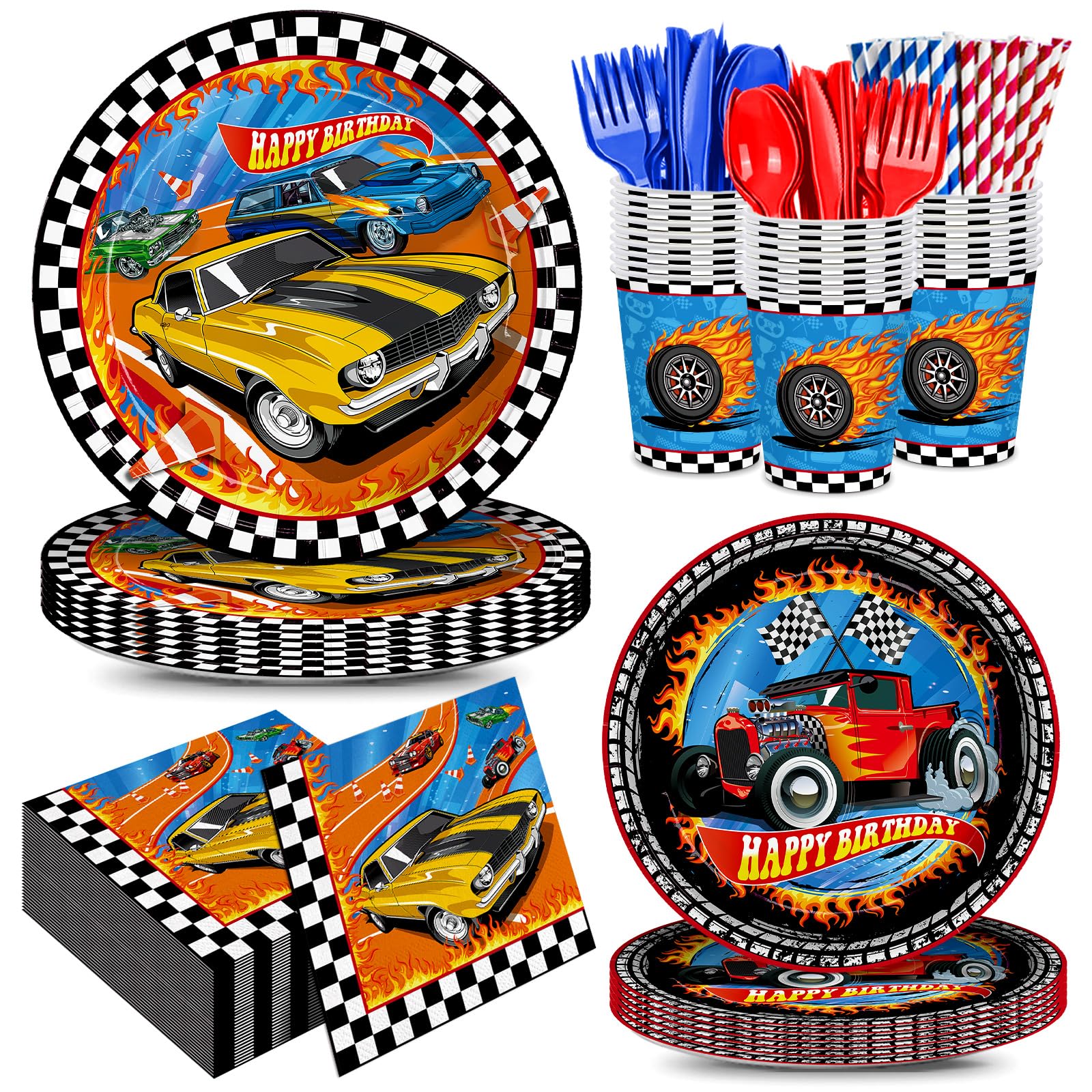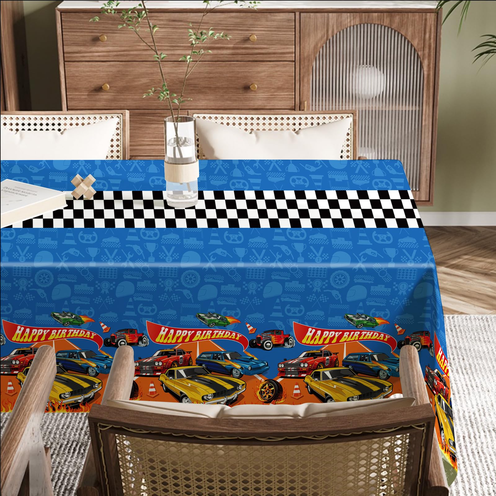 Racing Car Design: The race car party tablecloths are feature vibrant race cars, Racing car designs, and classic black and white checkered flag patterns. Njecting vitality and energy into the party and ensuring your race car birthday party experience is absolutely wonderful.