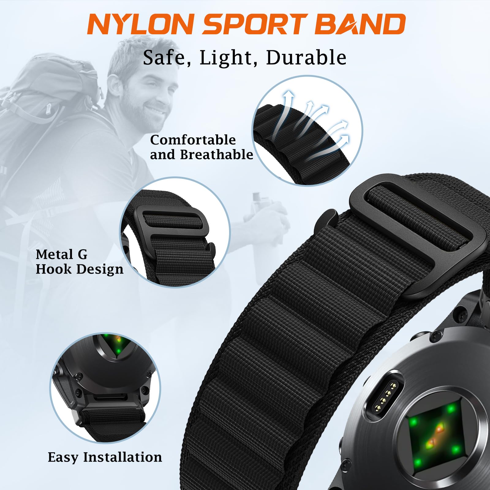 Compatible Models: ShinKin QuickFit 22mm Nylon Watch Band for Garmin Fenix 8 Pro 47mm/Garmin Tactix 8 47mm/Garmin Descent G2/Fenix 8 51mm/Fenix 8 Solar 51mm/Fenix E/Fenix 7 Pro Solar/Fenix 7 Pro Sapphire Solar/Fenix 7 Solar/Fenix 7/Fenix 6/Fenix 6 Pro/Fenix 6 Solar/Fenix 6 Pro Solar/Fenix 6 Sapphire/Fenix 5/Fenix 5 Plus, Garmin Forerunner 970 965/955/955 Solar/945/935, Garmin Descent G1, Approach S70 47mm/S62/S60. Compatible with all QuickFit 22mm smartwatches