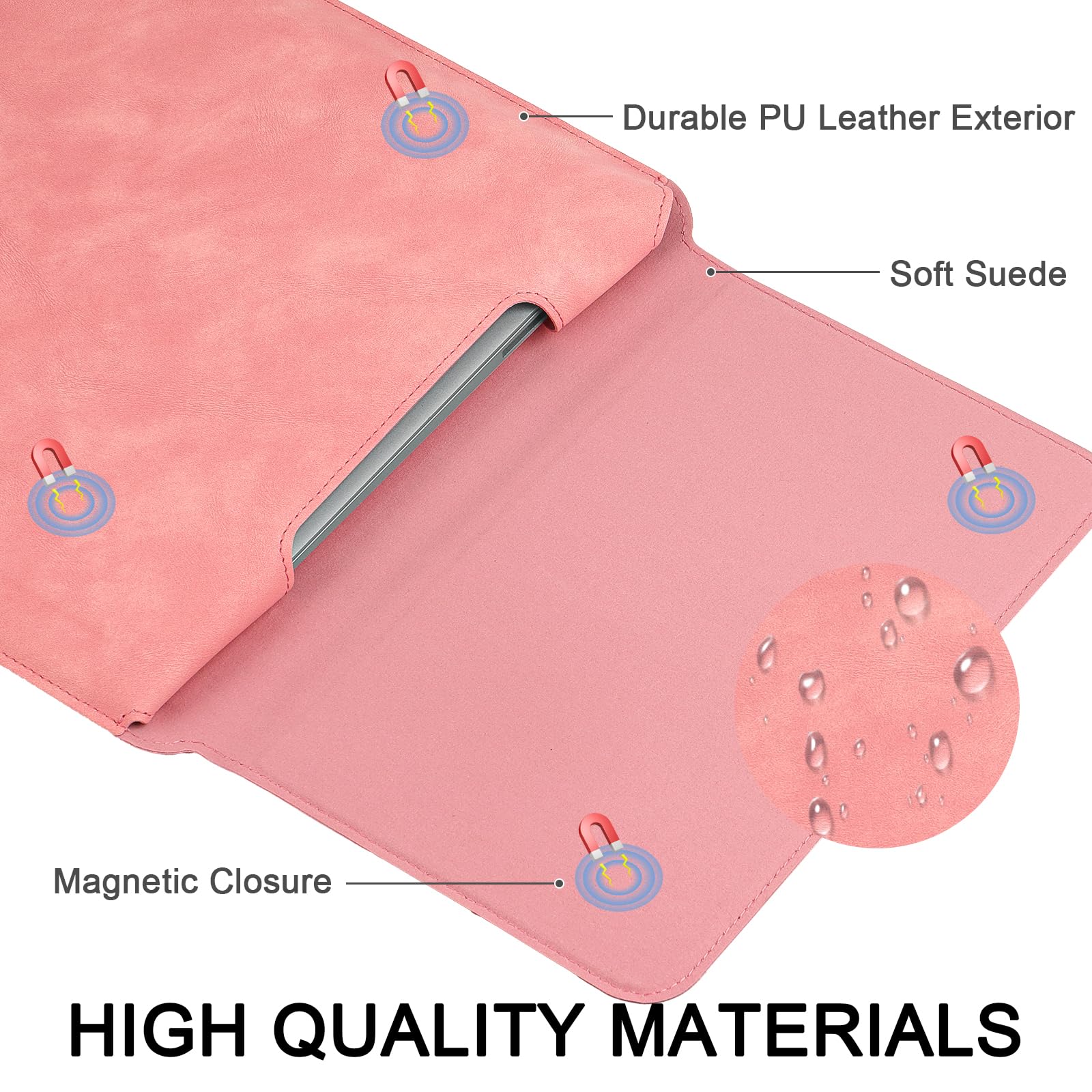 It's made of high-quality waterproof pu leather and soft lining, prevent your laptop from scratches and daily damage. Protect your device from shocks and dust. Soft touch feeling and smooth surface make it easy to clean.