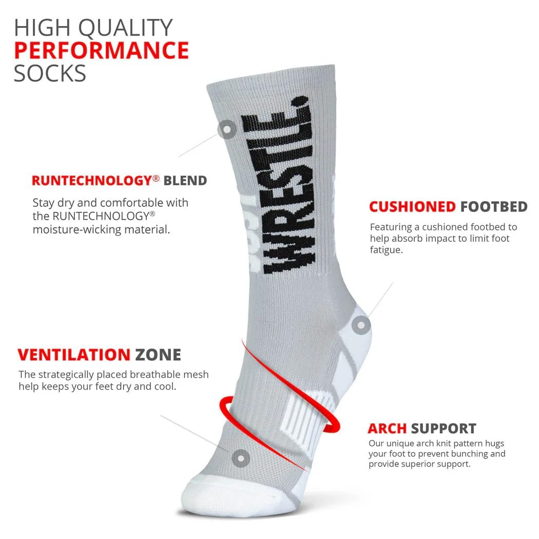 ELASTIC & STRETCHABLE FOR ALL-DAY COMFORT – Designed with cushioned support, these mid-calf socks feature an elastic, stretchable fit that stays in place through every move. Perfect for wrestlers, coaches, and fans, they’re also great for running, training, other sports, or relaxing at home. Pairs well with any sneaker or shoe!