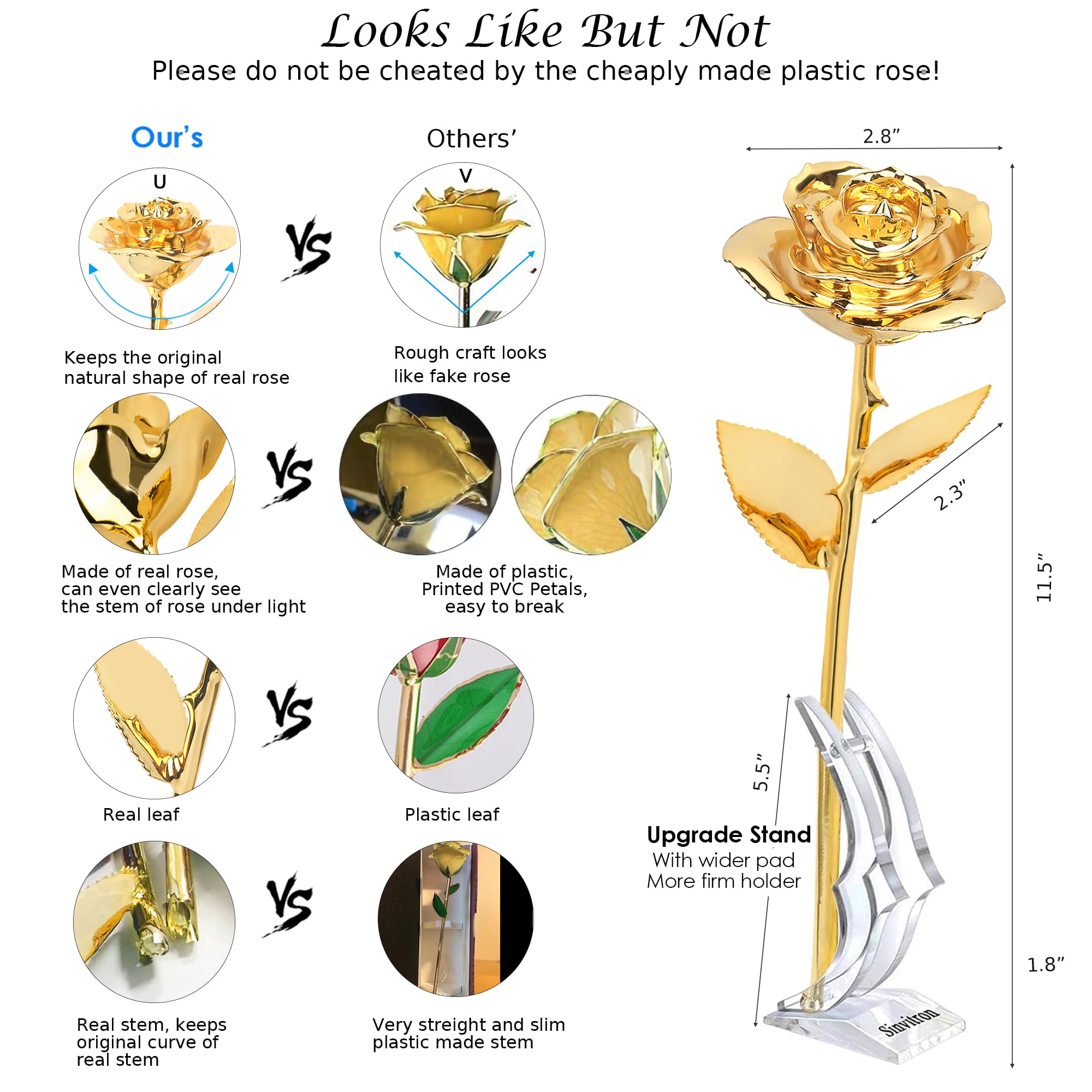 🌹【Easy To Care】Keep the never withered gold plated rose in a cool place, without management, If need to clean it, please use water or a soft dry cloth to clean it!
