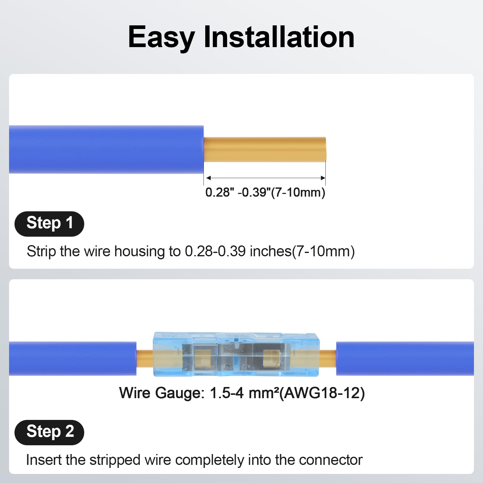 Easy & Secure: Convenient and time-saving wiring, no screws required; Solid wires can be directly inserted, while stranded wires should be inserted with a wire ferrules terminals (recommended stripping length: 7-10mm); The connection is firm and won't come loose