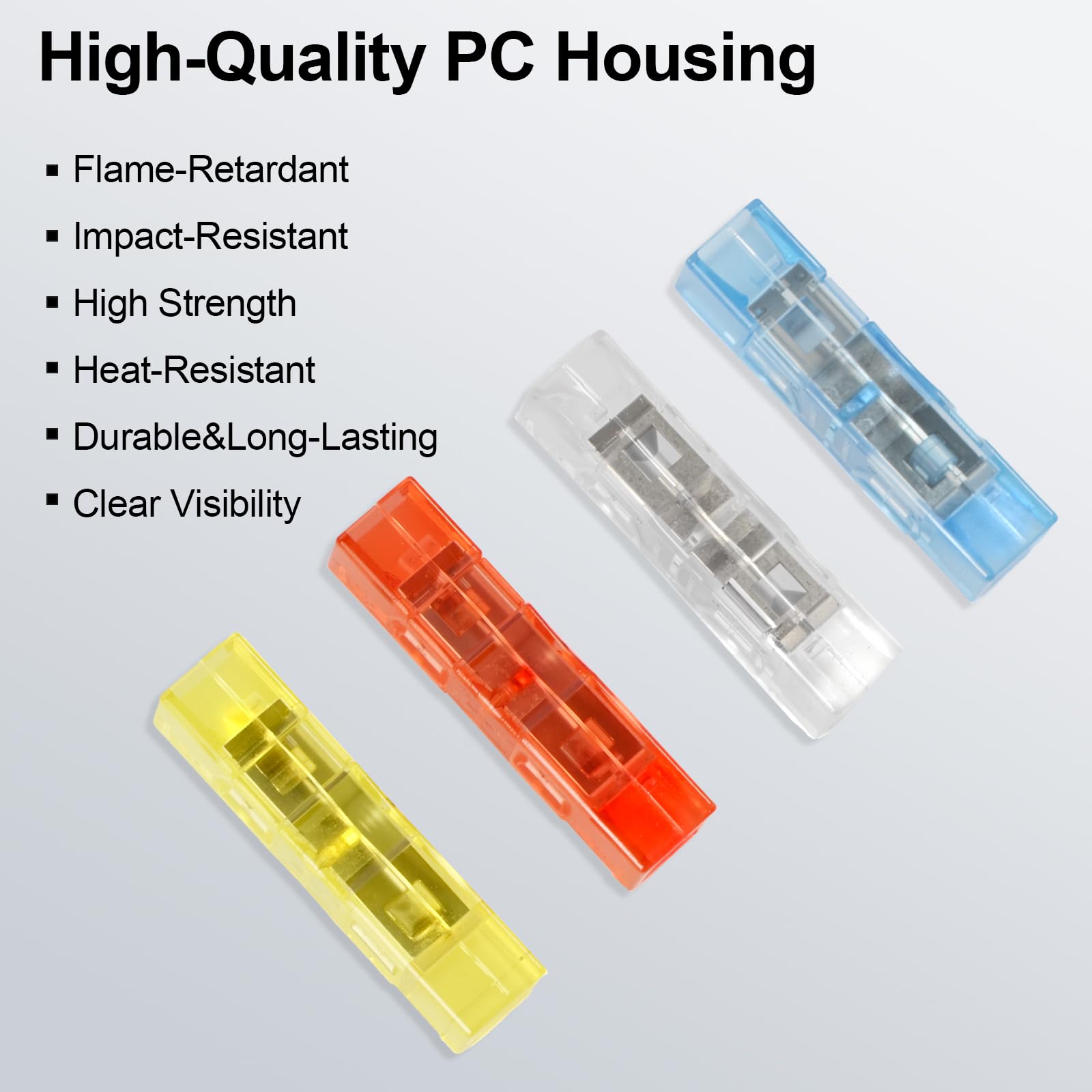 High-Quality PC Housing: Flame-retardant, insulated, and heat-resistant with high strength and impact resistance, resistant to deformation/cracking for excellent durability; Features clear visibility and comes in red, yellow, blue, and white for easy identification and sorting