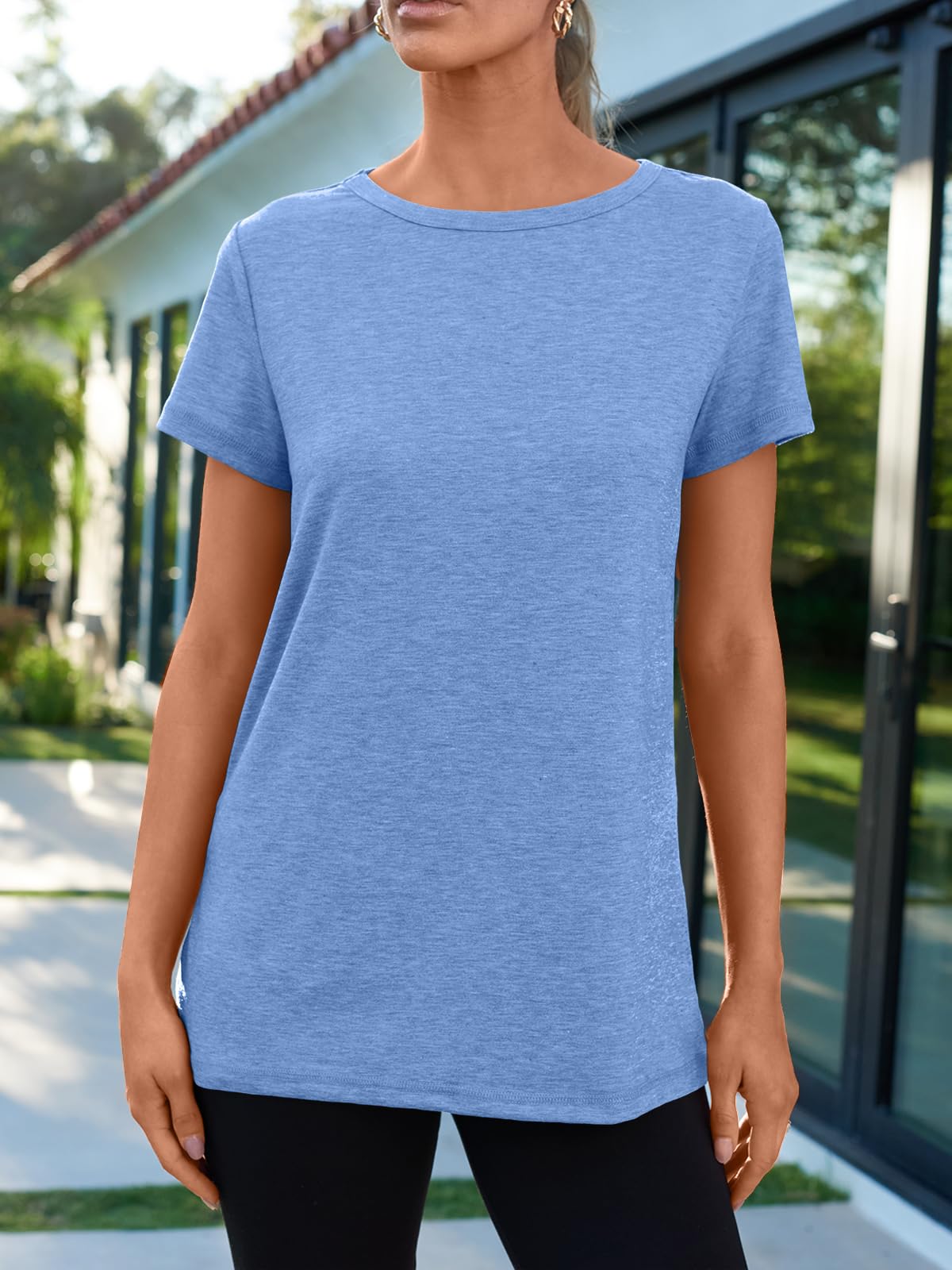 Refined Everyday Look: Featuring a timeless crewneck and clean, minimalist lines, this solid-color top offers a structured yet soft feel. It's a modern classic that instantly elevates your simplest outfits with a polished, put-together aesthetic—a dood choice for teachers and professionals seeking effortless style