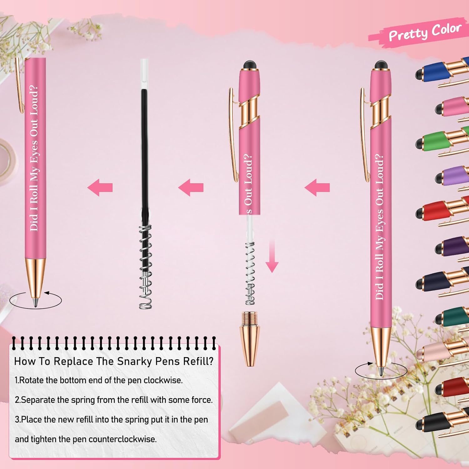 Snarky Funny Office Pens,36 Pcs Negative Sarcastic Hilarious Quotes Work Ballpoint Pens with Stylus Tip for Colleague Co-workers Gift Black Ink
