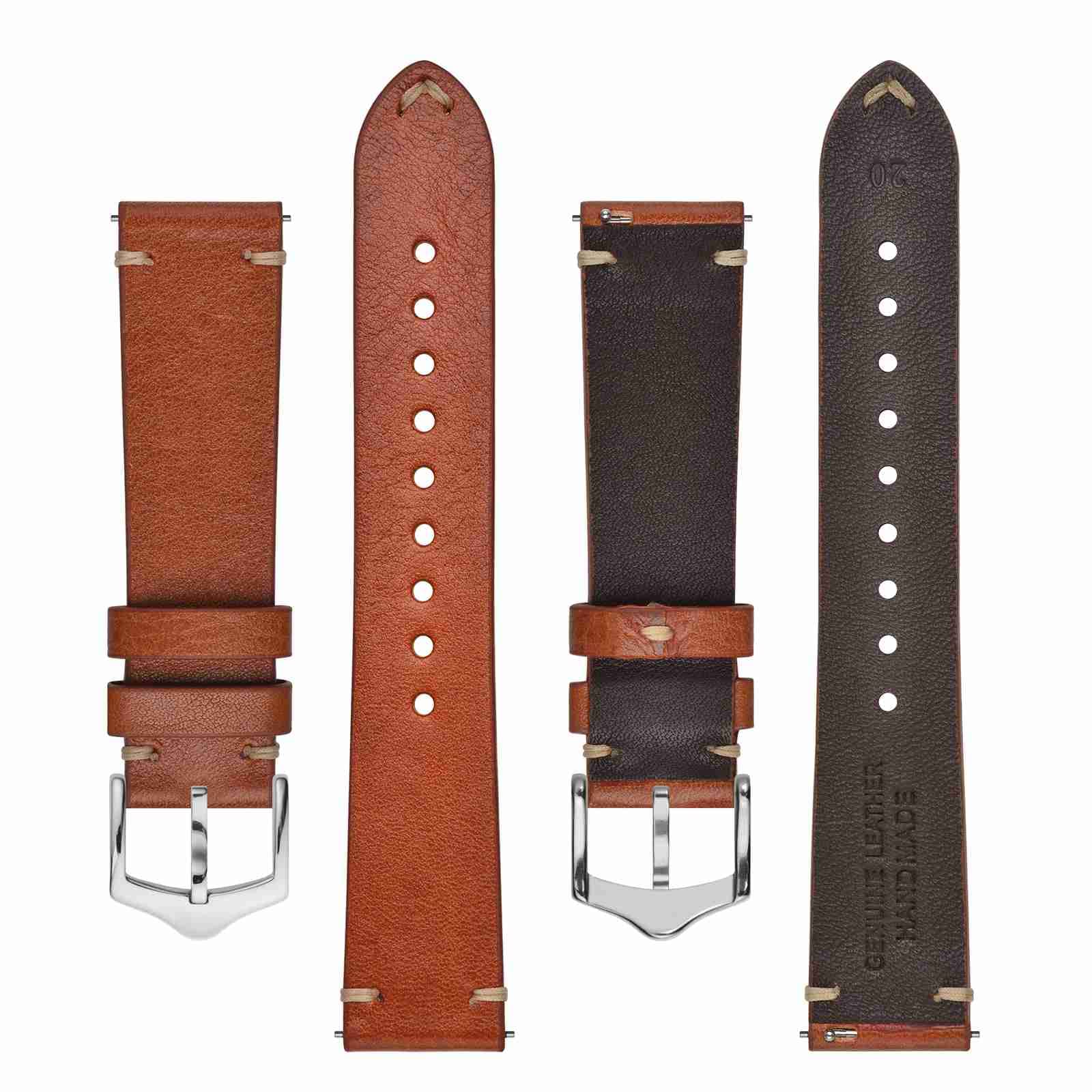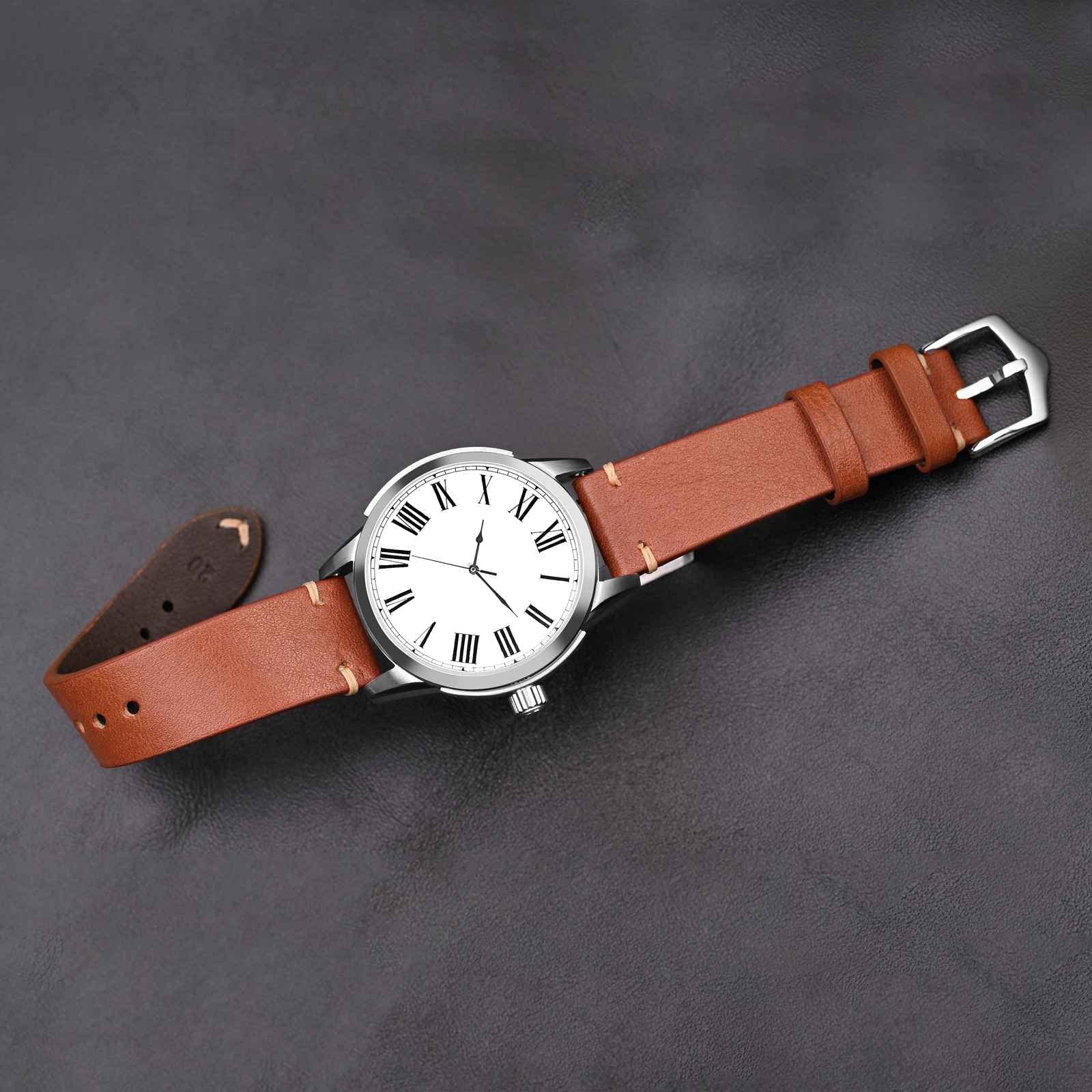 Italian Calfskin: Toffee Brown, Coffee Brown and Black watch straps are made of Italian calfskin, which is durable and will conform to your wrist with time for superior comfort