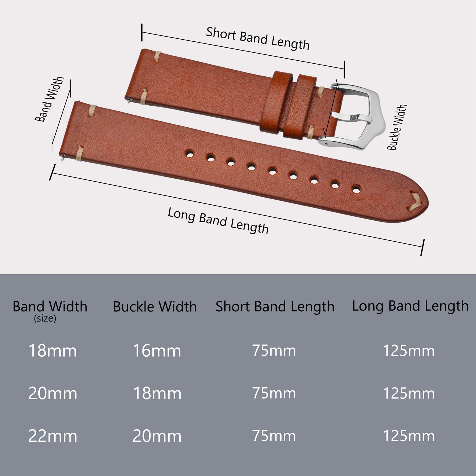 Band Width (Size): Fit for different kinds of watch that uses 18mm, 20mm, 22mm spring bars, please accurately measure your watch lug width and choose the right size