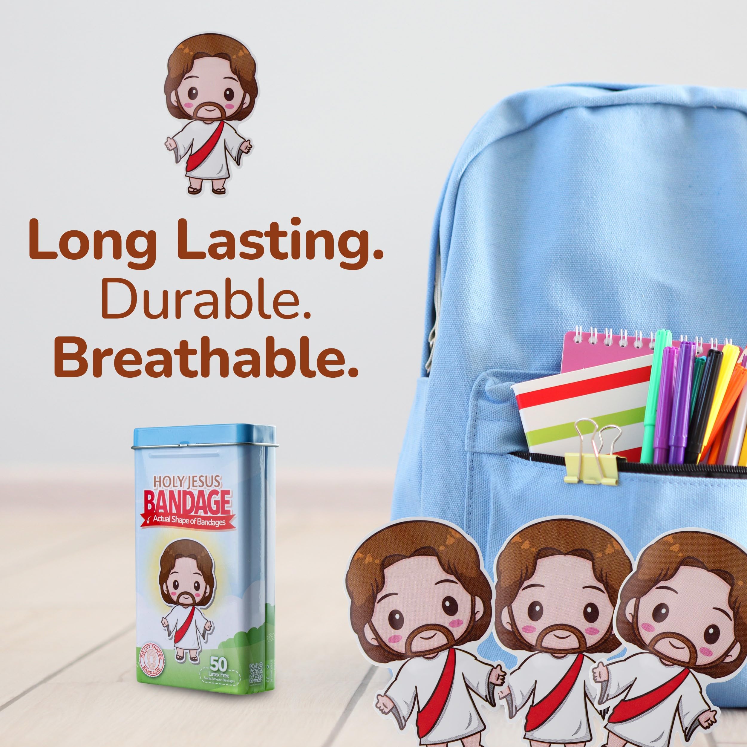 50 JESUS BANDAGES: Jesus-shaped adhesive bandages tin helps protect cuts, scrapes, and minor wounds while making healing less stressful