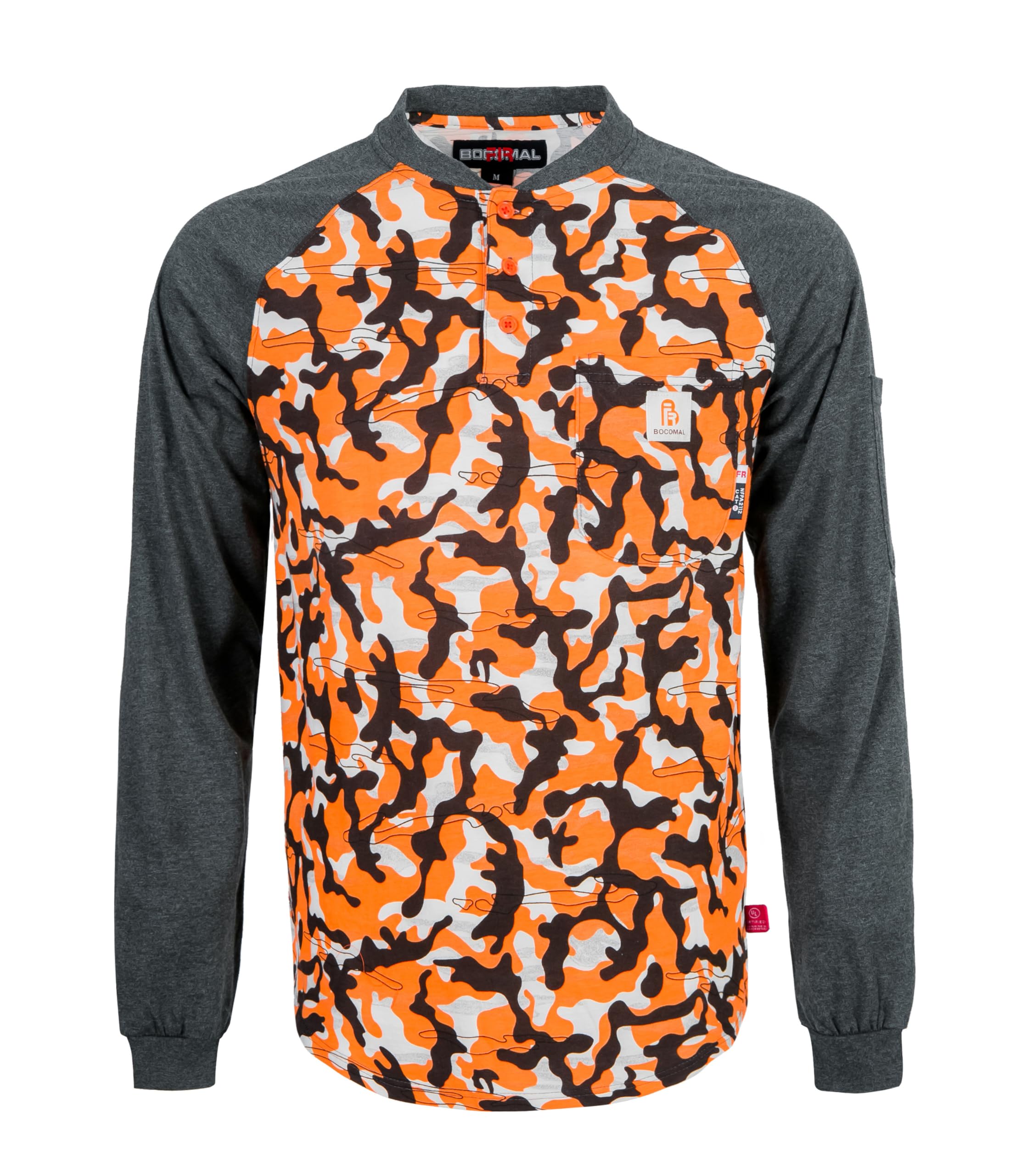 FR MATERIALS:This camo two-tone shirt made by 100% lightweight cotton flame-retardant fabric,provide a flexible and comfortable smooth fit.Featuring a tagless design for comfort,reinforced seams around the collar,sleeves and bottom hem add extra durability to the shirt.