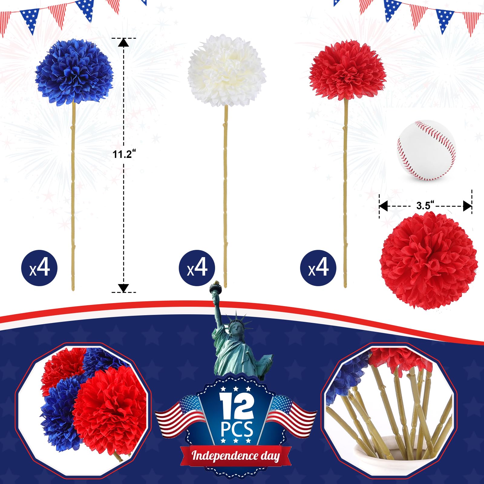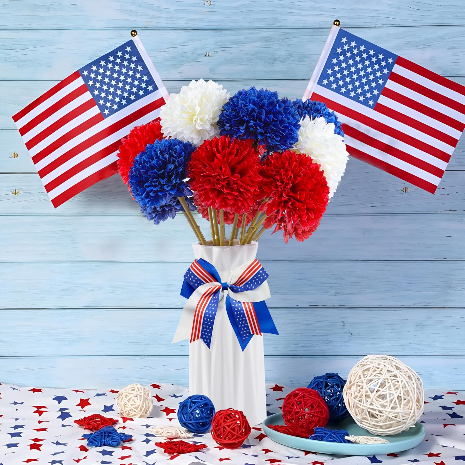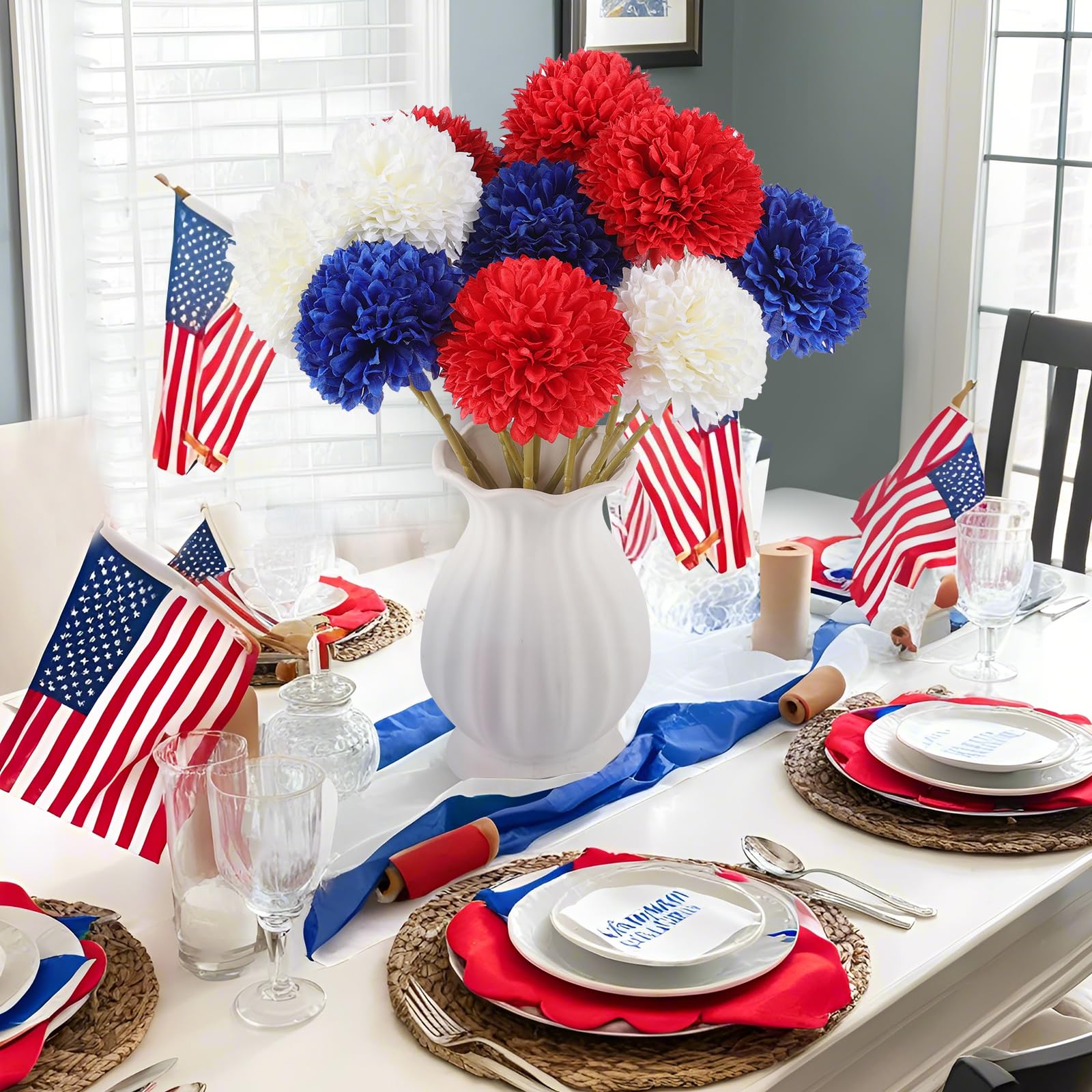 Versatile Decoration: Whether used for fall centerpieces, flower arrangements, or home decor, these artificial chrysanthemums are incredibly versatile. Their timeless beauty complements any aesthetic, from classic to modern, making them a perfect choice for any occasion. Especially for 4th of July, Memorial Day.
