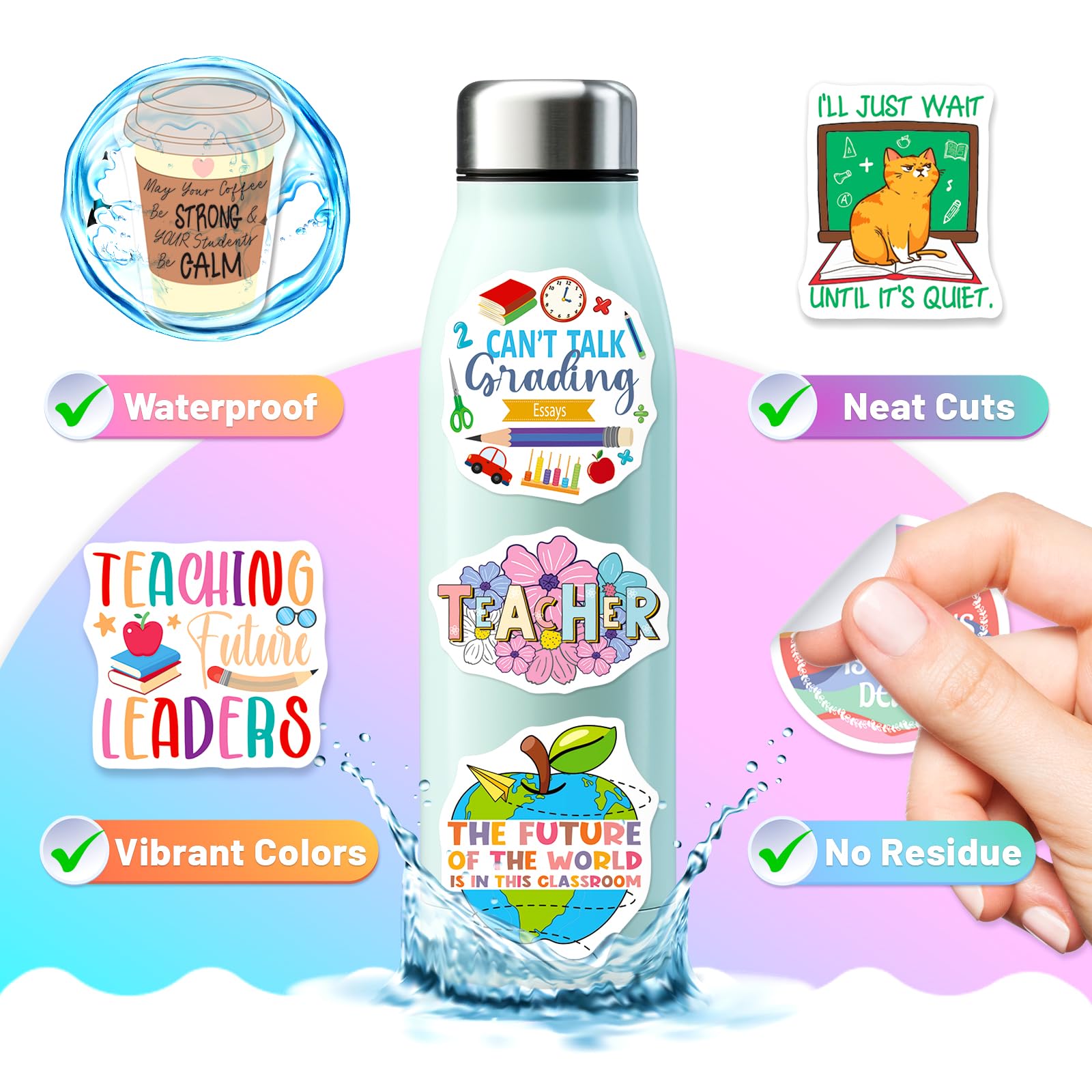 Leave No Trace, Only Stories: Made from waterproof, UV-resistant, and scratch-proof vinyl, these teacher stickers are durable and easy to remove without leaving sticky residue—great for daily use.