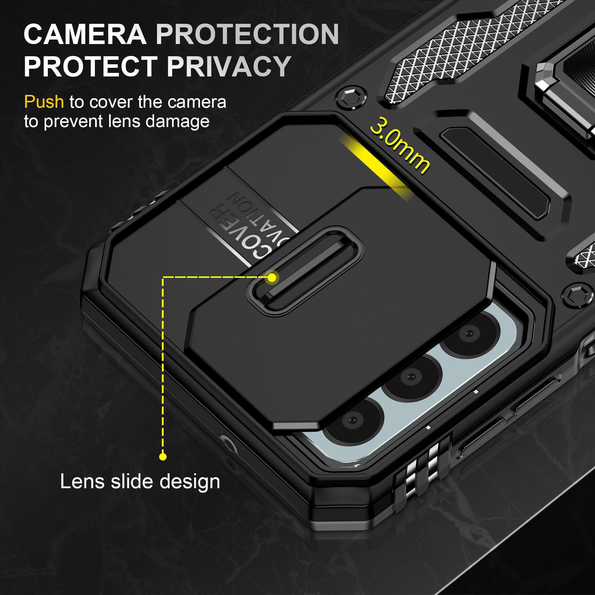 【Camera Lens Protection】 This phone case use lens slide design, it easy to slide and not to loose, and enhance protective of your phone camera from scratches, collision, scuffs and impact, not only improve safety, protect your privacy but also has a sense of fashion.