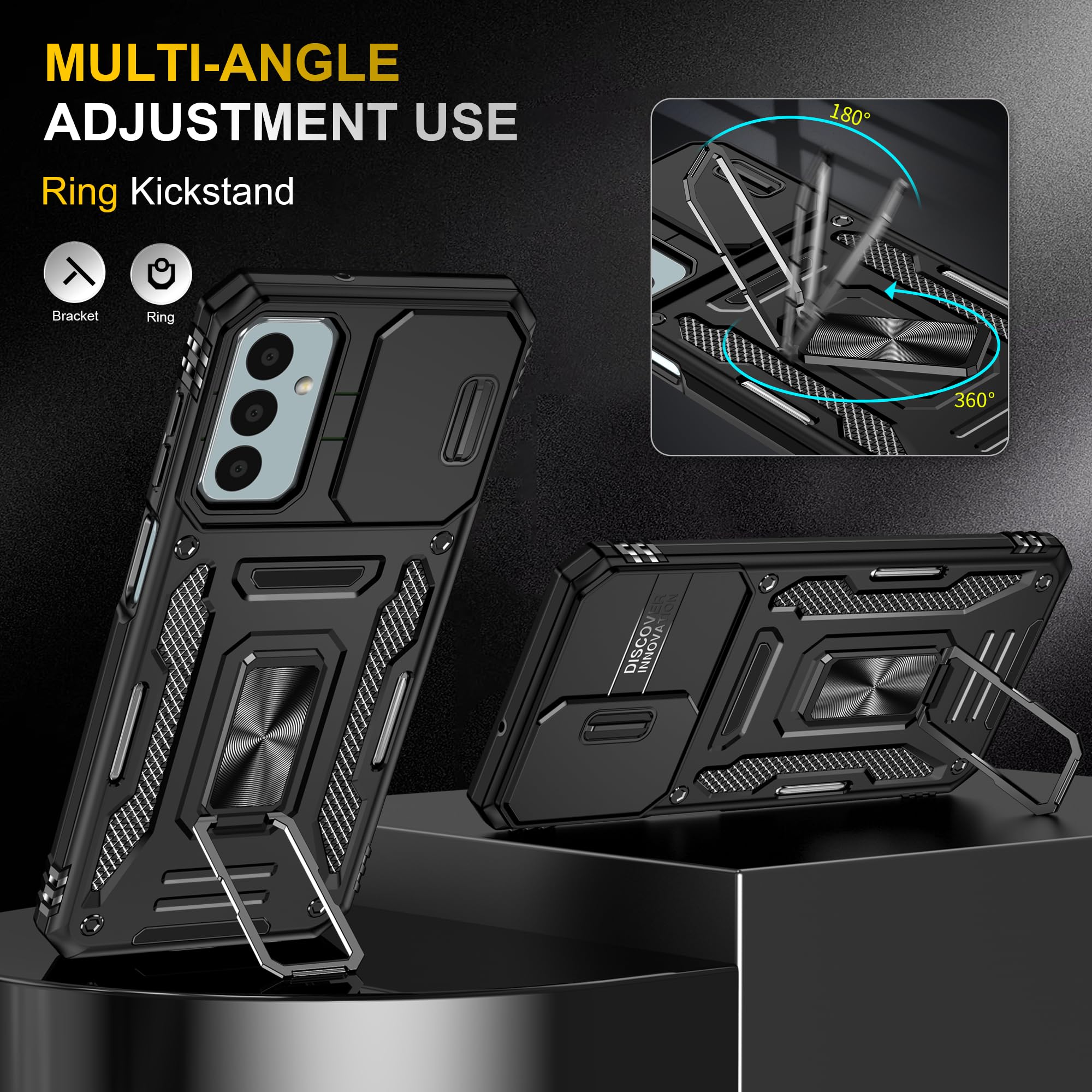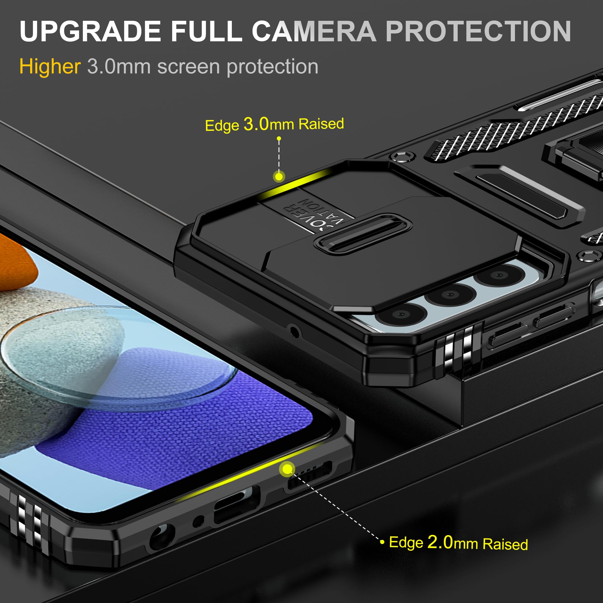 SunStory Phone Case for Samsung Galaxy A15 5G Case with HD Screen Protector & Slide Camera Cover & Rotated Ring Kickstand, [Military-Grade] Phone Case for Galaxy A15 5G