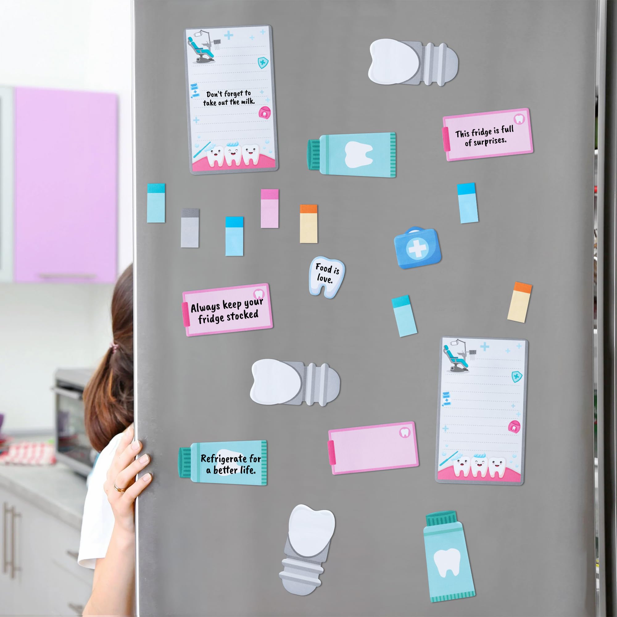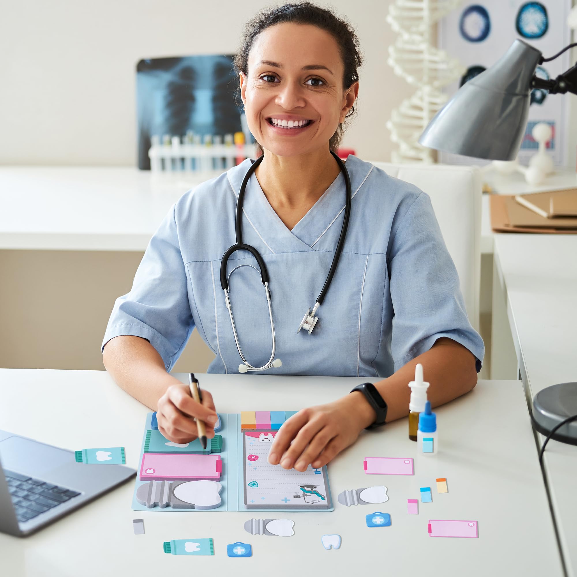 Widely Used: Dentist city theme writing sticky notes are suitable for home, school, office and so on. They are practical teacher and doctor appreciation gifts, they can be used for daily reminders, textbooks, reading, journals, and can also be pasted on doors, walls, computers, refrigerators to make your daily life more convenient