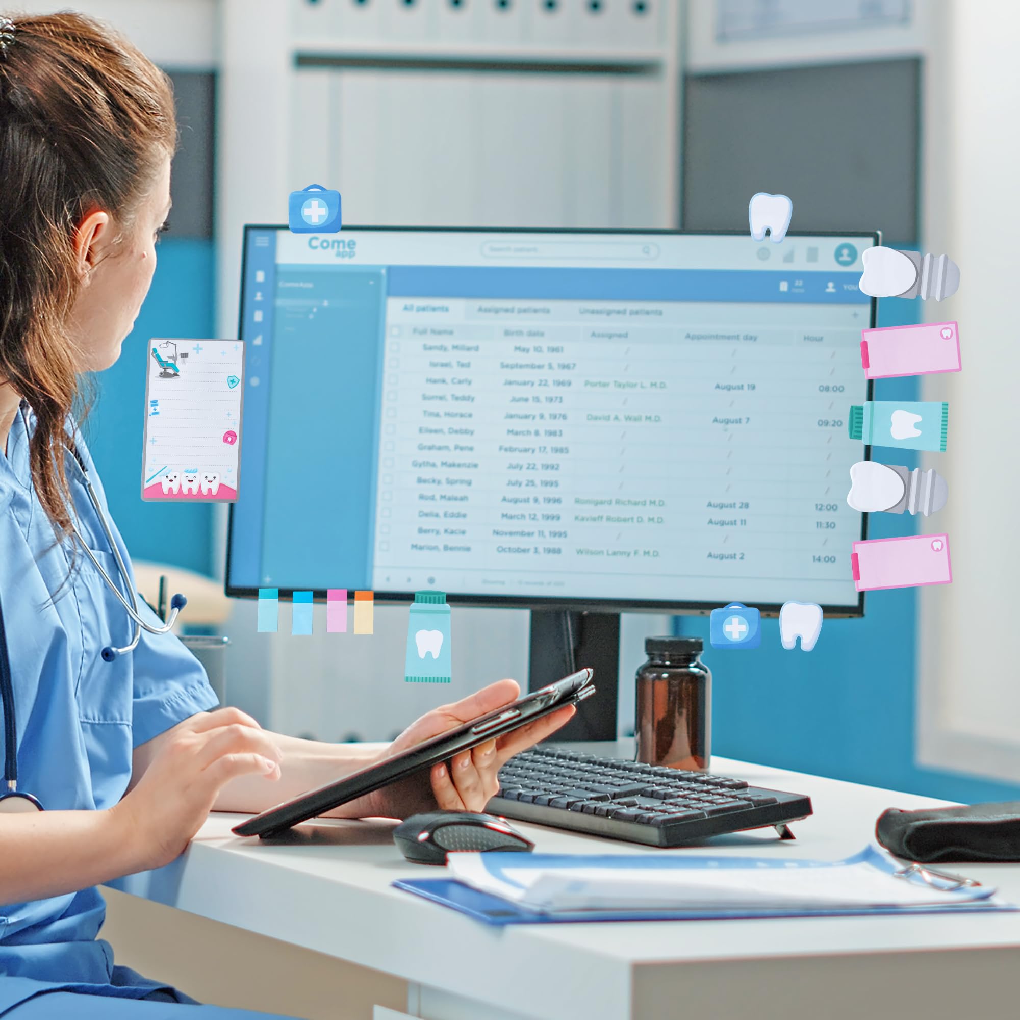 Dentist Sticky Notes: You'll get dotted line sticky notes, tabbed sticky notes, 3 types of dentist elements sticky notes, 1 type of teeth sticky note, and 1 type of medical bag sticky note. There are 50 sheets of each type, totaling 550 sheets, enough to meet all your needs
