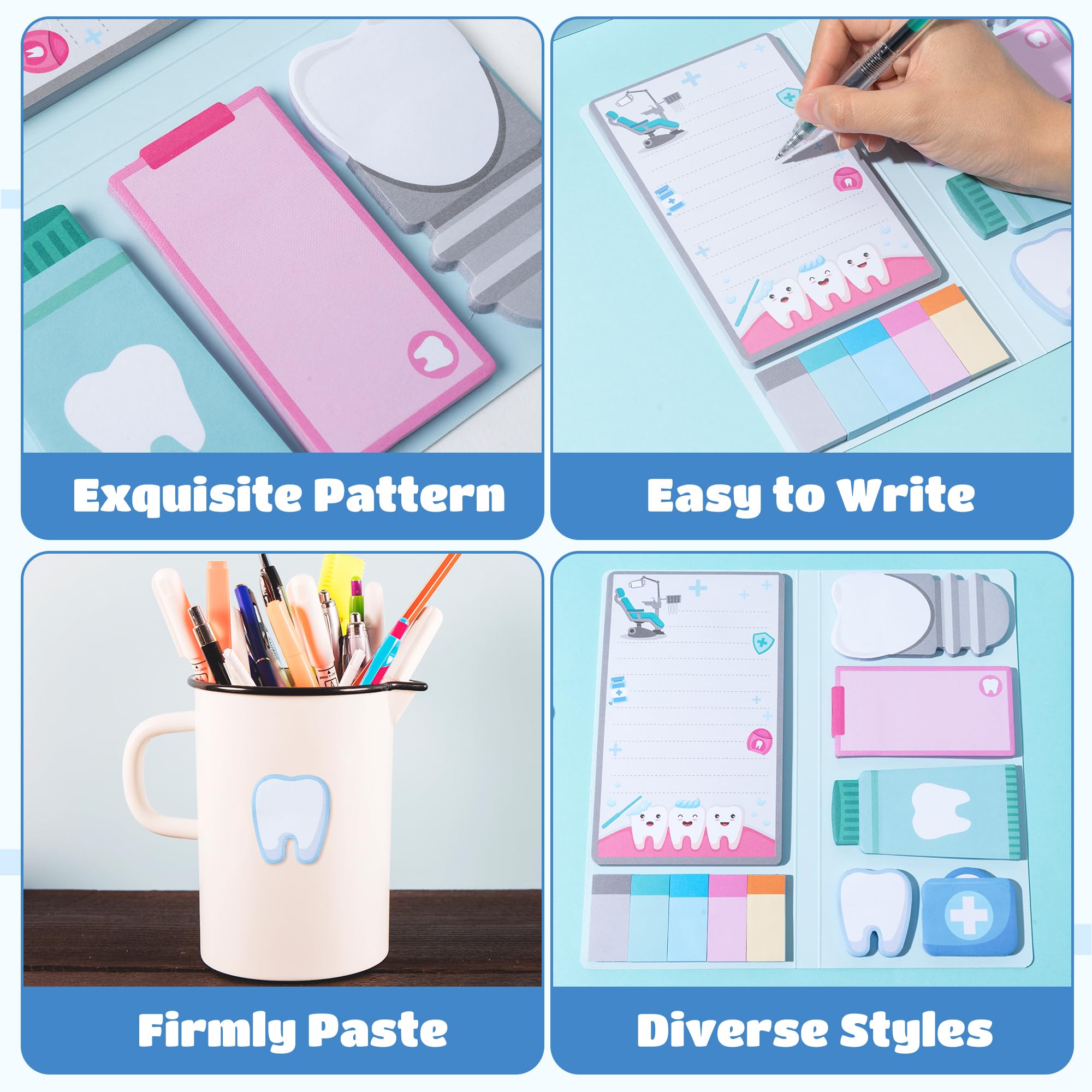 Unique Design: The notepads are based on the theme of dentist, and the sticky notes have different types of dentist and teeth images, which are simple and fashionable. It can add beauty to your books, desk and room, bring you a pleasant mood