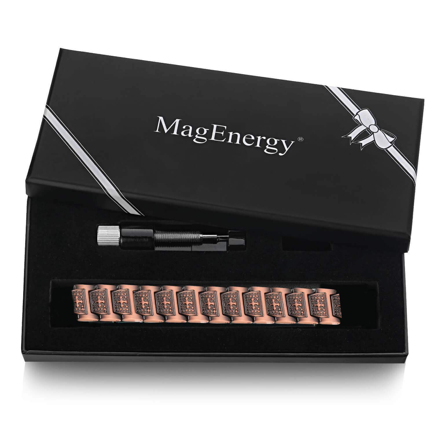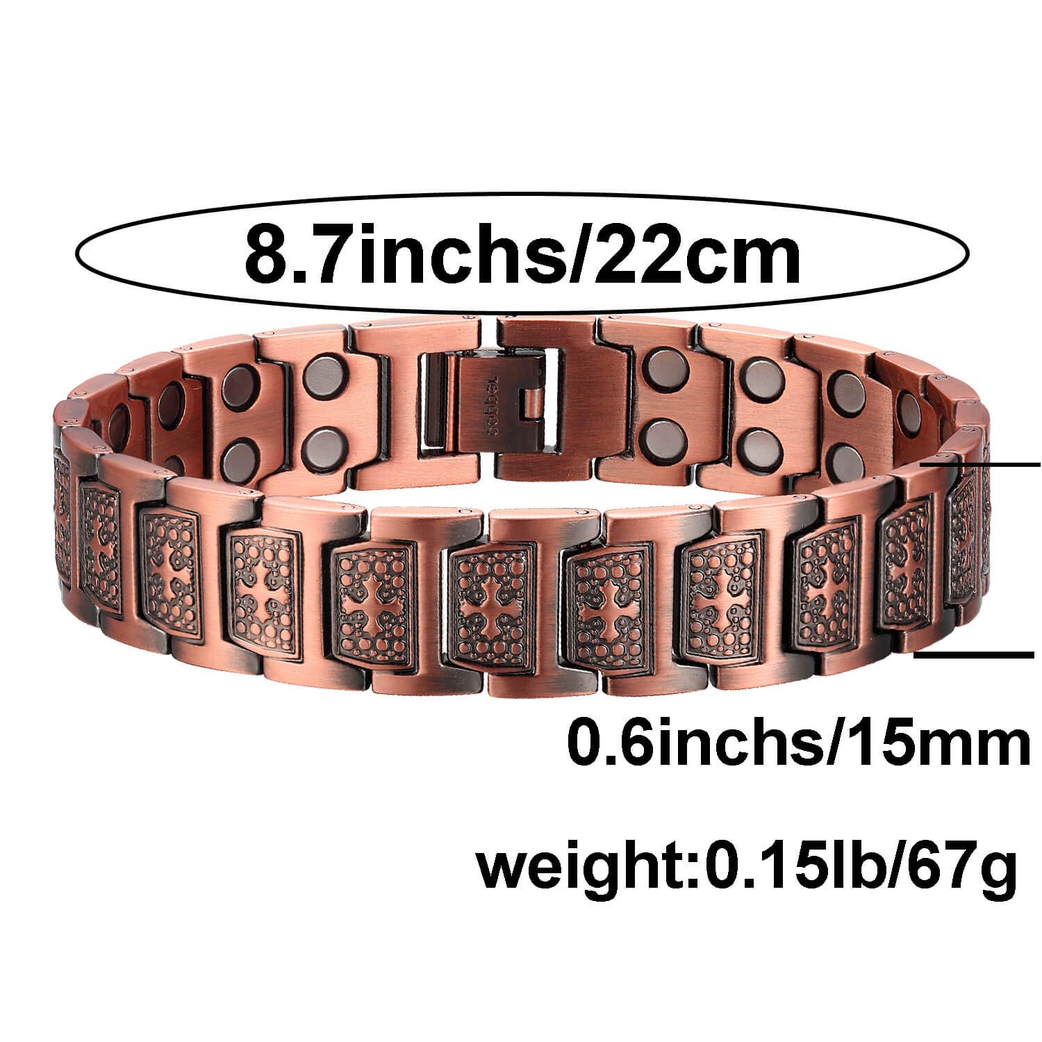 [Adjustable Bracelet Fits Most]-Copper magnetic bracelet width 0.6in, length 8.7in, Offer Free size adjusting tool and instruction video, which allows you to adjust the size easily at home.