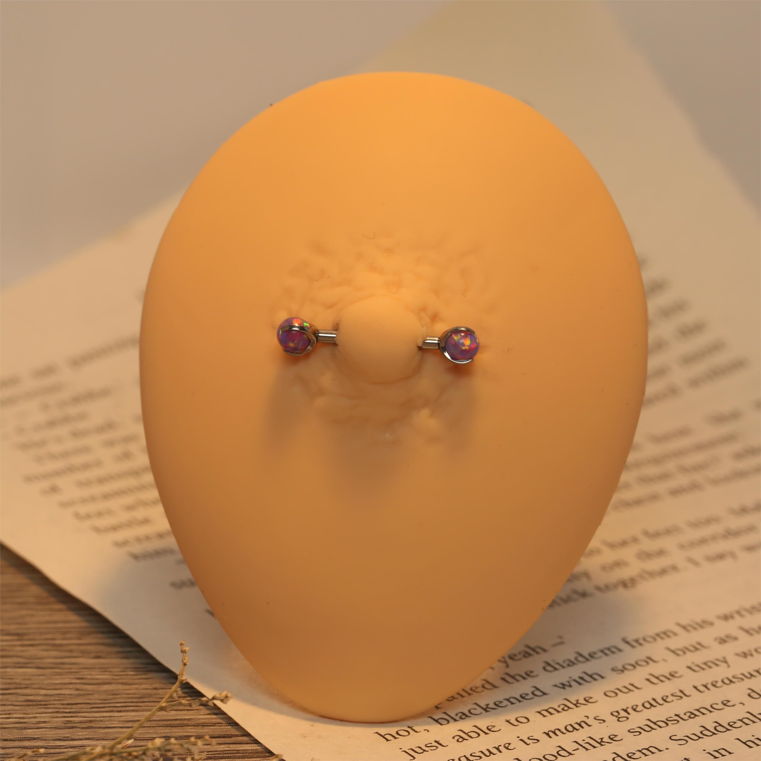 Claw Fixation Opal Design: The nipple rings with chic opal on both side and opals use claws to fix it more firmly; Wearing it will make your nipple piercing more attractive