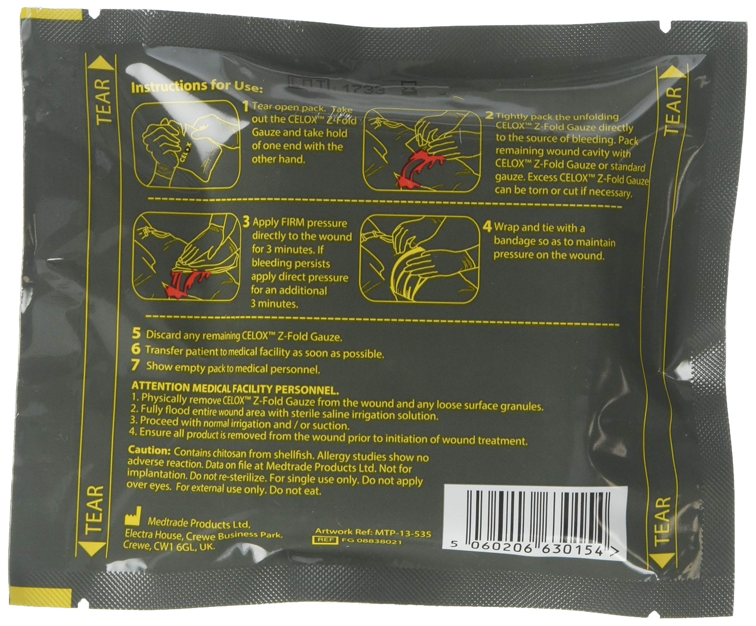 Celox Gauze Z-Fold is the newest creation from the Celox range. Our new compact Z-Fold gauze is easy to work with, and the new slim pack is easy to carry. Celox granules are bonded onto the gauze, giving Celox Gauze Z-Fold the same effective technology as the original Celox Gauze roll. Celox Gauze Z-fold is the new smaller, slimmer and easier gauze. The 5foot length gauze will work as effectively as other 10 foot length gauzes. Celox Gauze has been tested in controlled environments, and real life combat situations. The results show that Celox saves lives. The shorter and more versatile gauze is easier to handle and reduces application time. Weighs only 34g; now being a slimline pack, more packs can be carried at once.