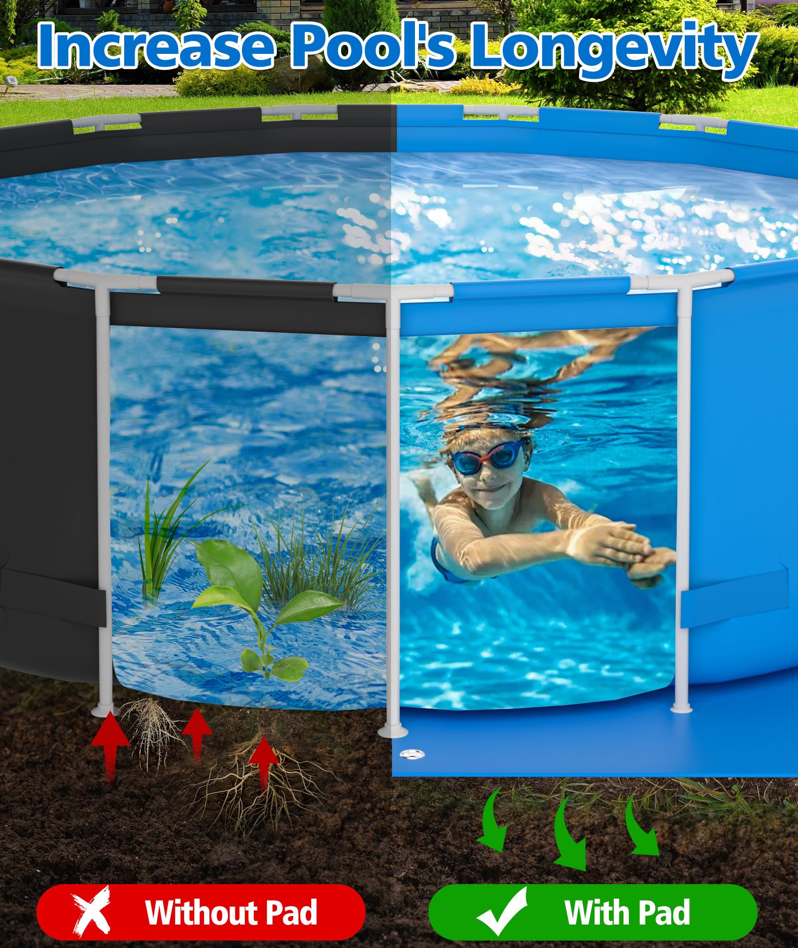 【Multiple Size Options】-Our pool liner pad comes in various sizes to suit your needs, specially designed for ground pools and compatible with different types of pools. Whether it's a splash pad, splash pool, or swimming pool, it ensures a perfect, snug fit with our pool mat, providing you with a wonderful summer swimming experience!