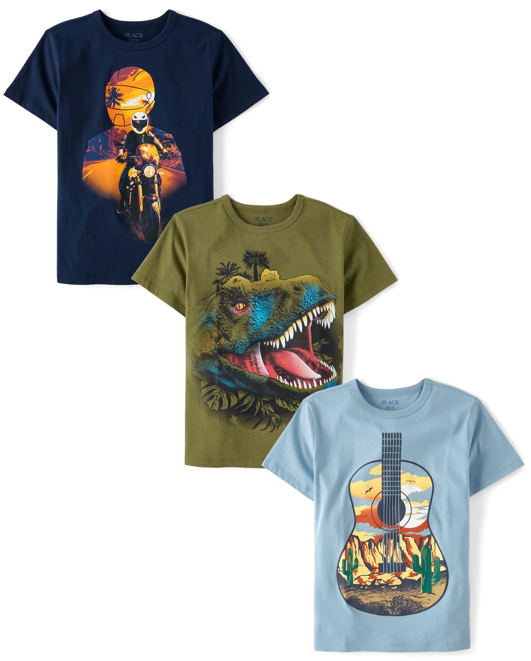 MULTIPACK: 1 dino head graphic design, 1 guitar with desert scene graphic design, 1 motorcycle graphic design