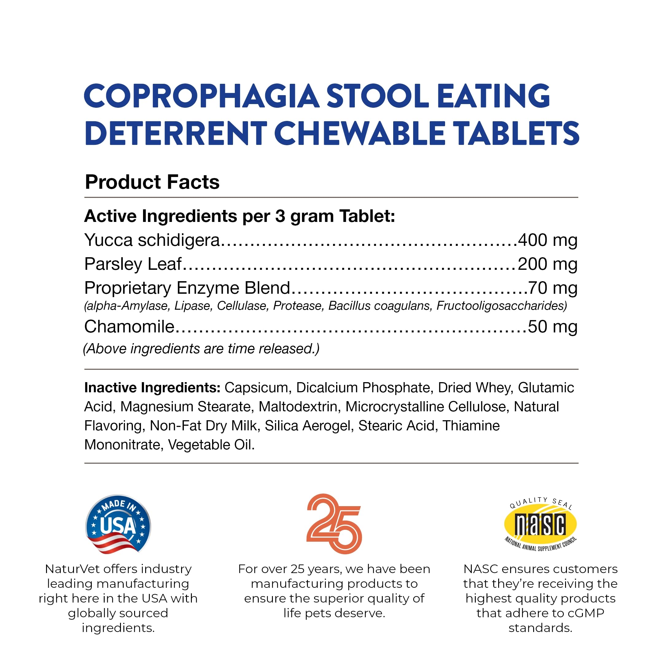 Recommended to help deter dogs from consuming their own stools or other dogs stools.