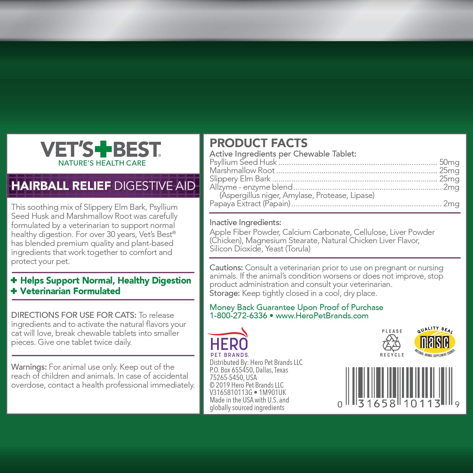 HELPS PREVENT & MANAGE HAIRBALLS NATURALLY: Vet’s Best Cat Hairball Relief helps prevent hairballs using a natural blend of plant-based ingredients; supports healthy digestion to reduce hairball formation & promote overall feline wellness with regular use