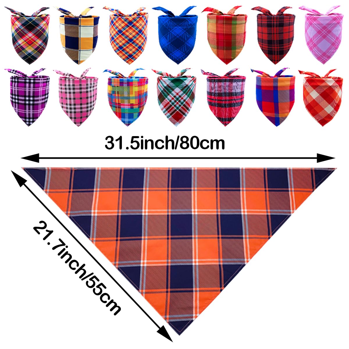 LARGE DOG BANDANAS PLAID SIZE : The size is approx 80*55cm*55cm/31*22*22inches, fits for large and extra large dogs;Please measure the neckline of your cutie and leave room to tie knot