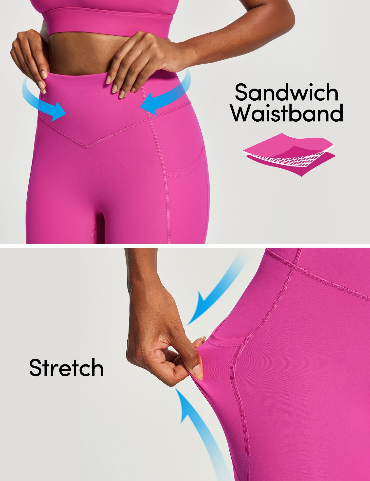 PowerTight Compression Fabric: These tummy control workout leggings are made of 69% nylon and 31% elastin fibers. This PowerTight fabric combines excellent elasticity and compression, providing high-level support. They also have the characteristics of breathability, quick drying, and quick sweating. In addition, they are opaque and can maintain coverage even when squatting, making them suitable for both exercise and casual wear