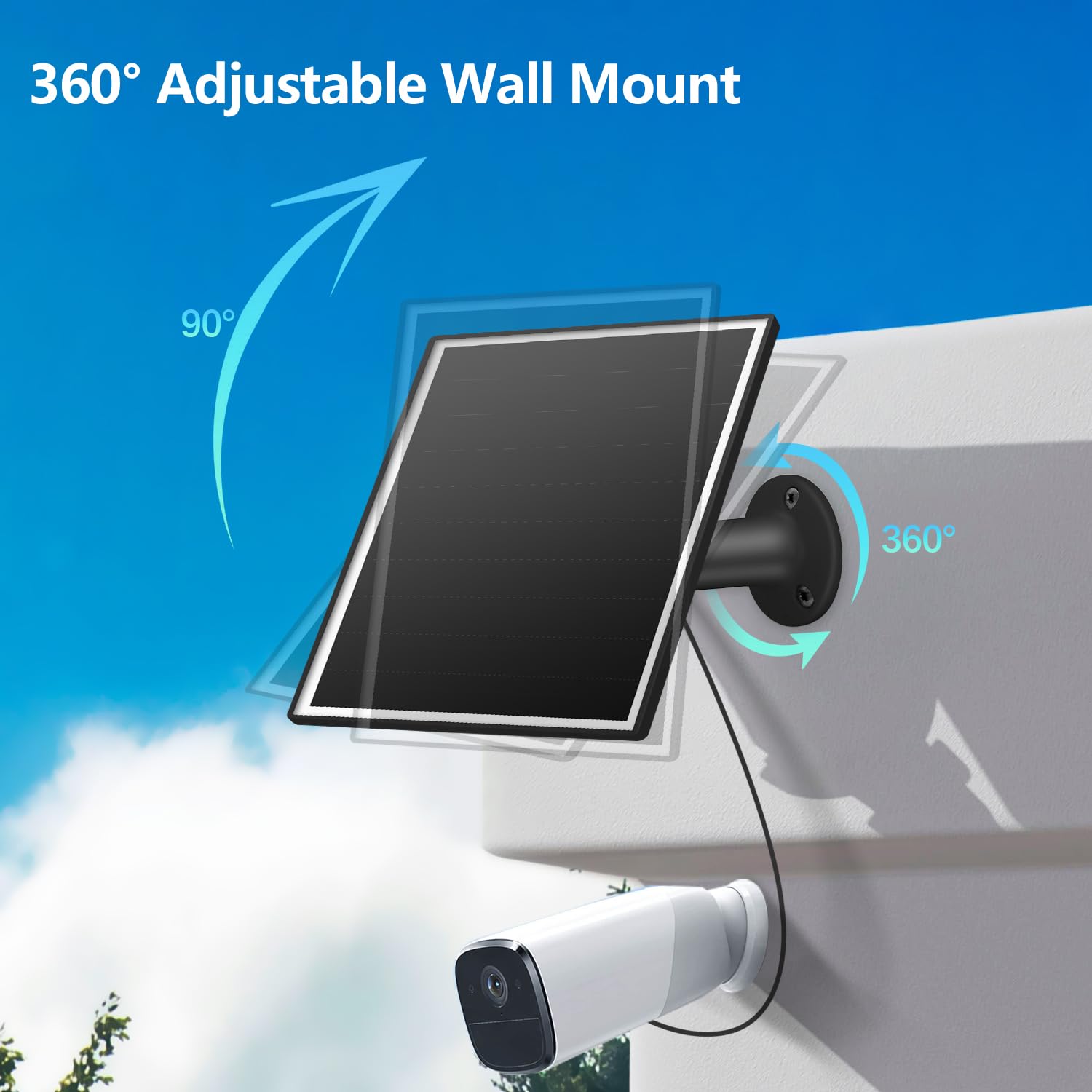 【High Efficiency】:With 23% high-efficiency shingled monocrystalline silicon and a larger 6W panel, this fast charging solar panel for cameras achieves higher efficiency. It generates more power ,keeping outdoor security cameras perpetually charged.