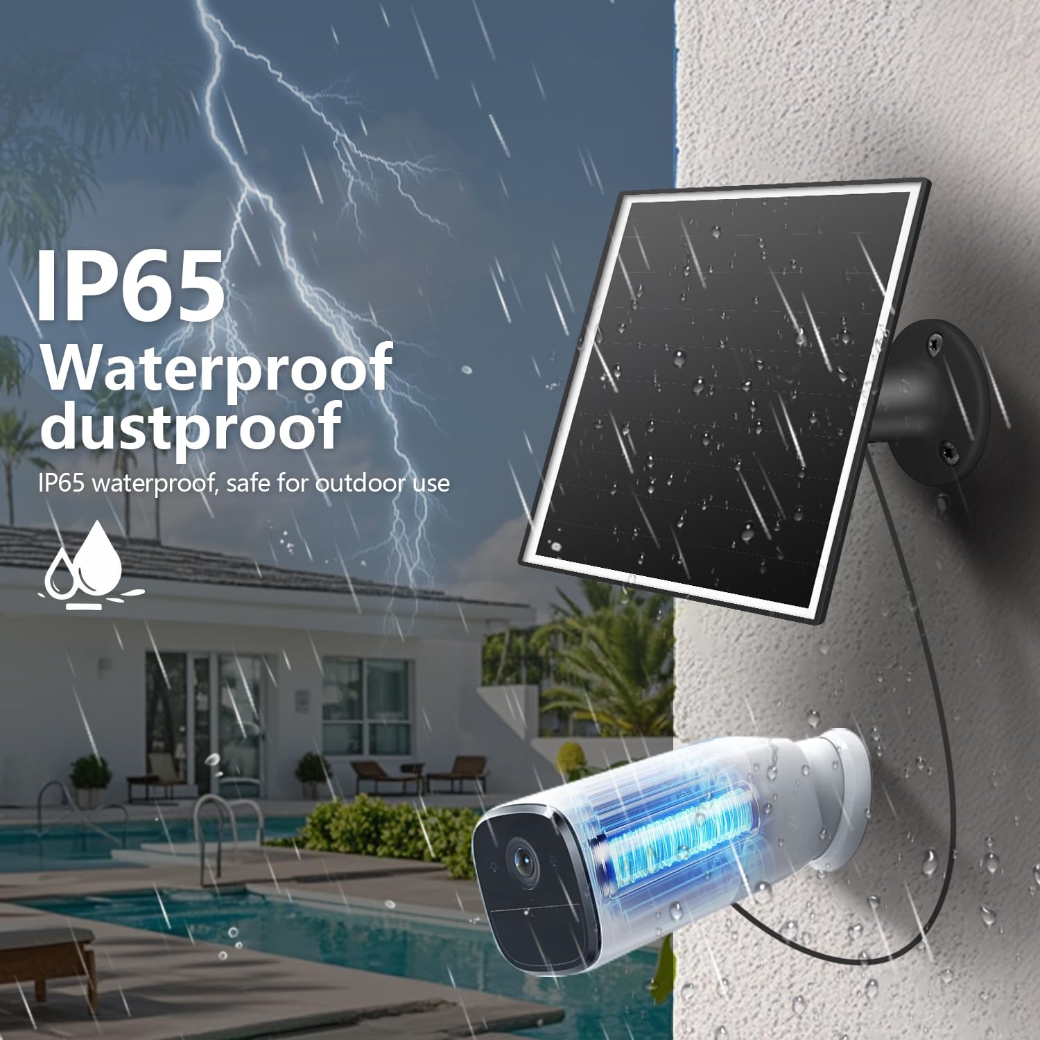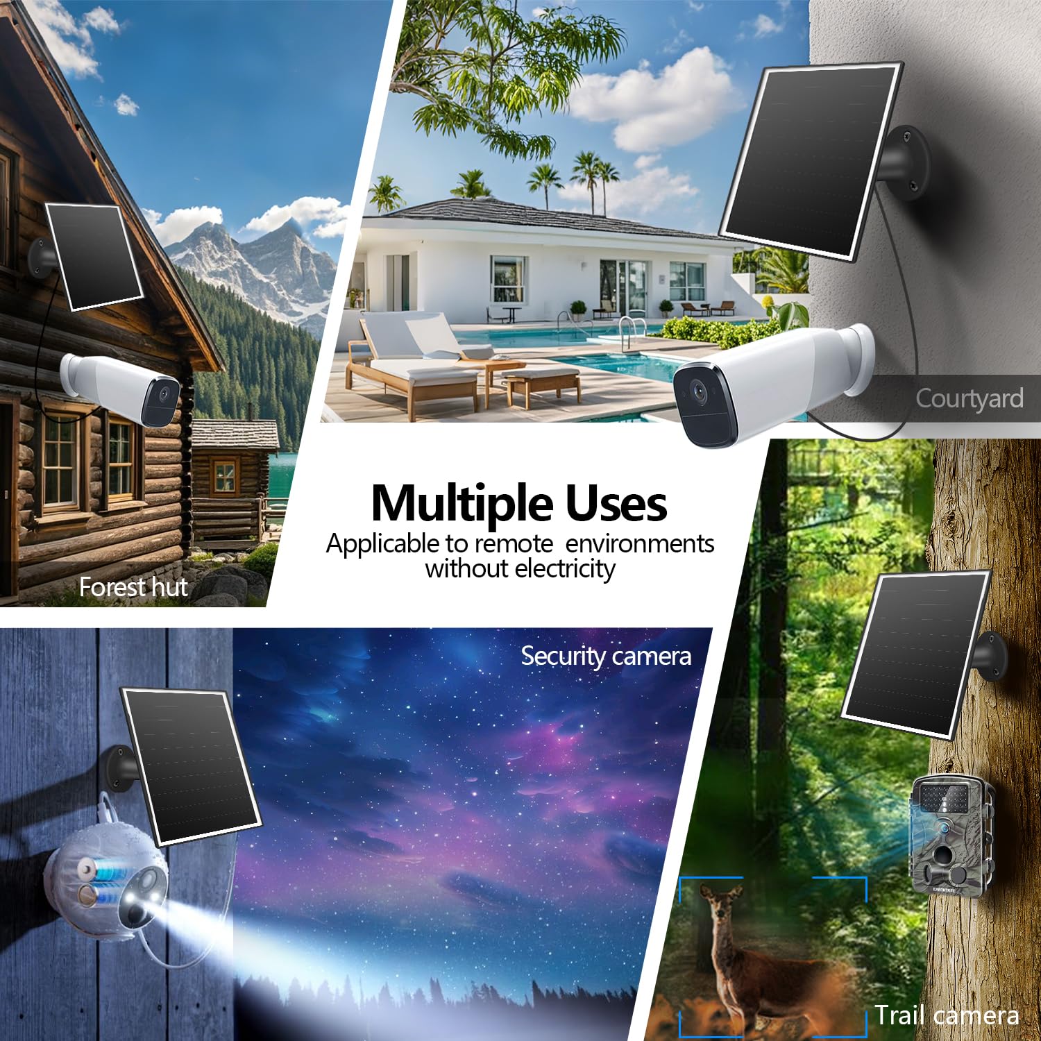 【Compatibility】:The solar panel charger comes with Micro USB/USB-C interfaces for rechargeable battery security cameras. The solar panel outputs DC 5V and is not compatible with cameras having other ports.The compatible models are introduced in the details (A+) section.