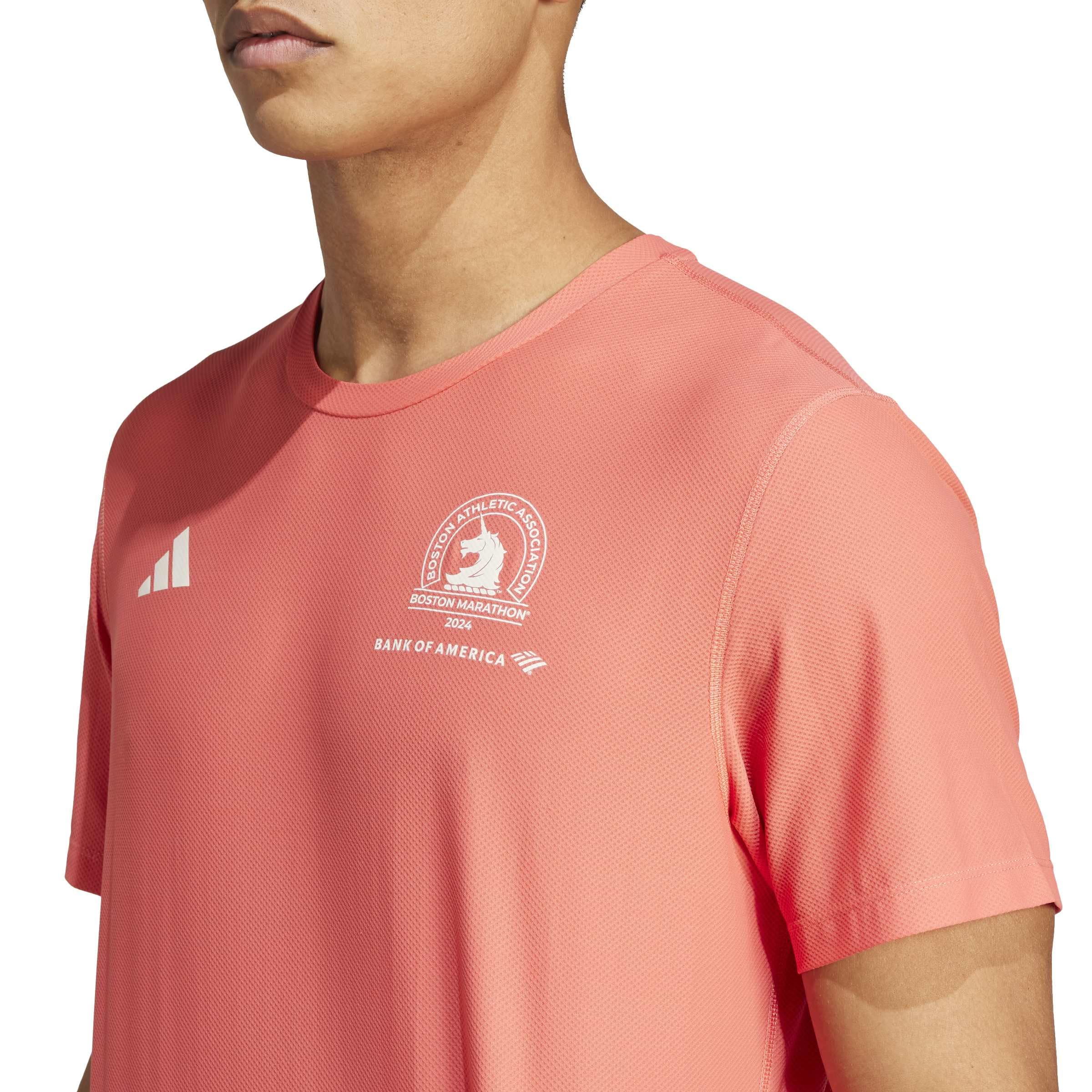 Description Get your next personal best in this men's lightweight running t-shirt from adidas. It's built with AEROREADY tech to manage moisture and keep you feeling fresh as you train for the big race. The Boston Marathon® logo showcases your commitment to the run, and reflective details shine in low-light conditions.